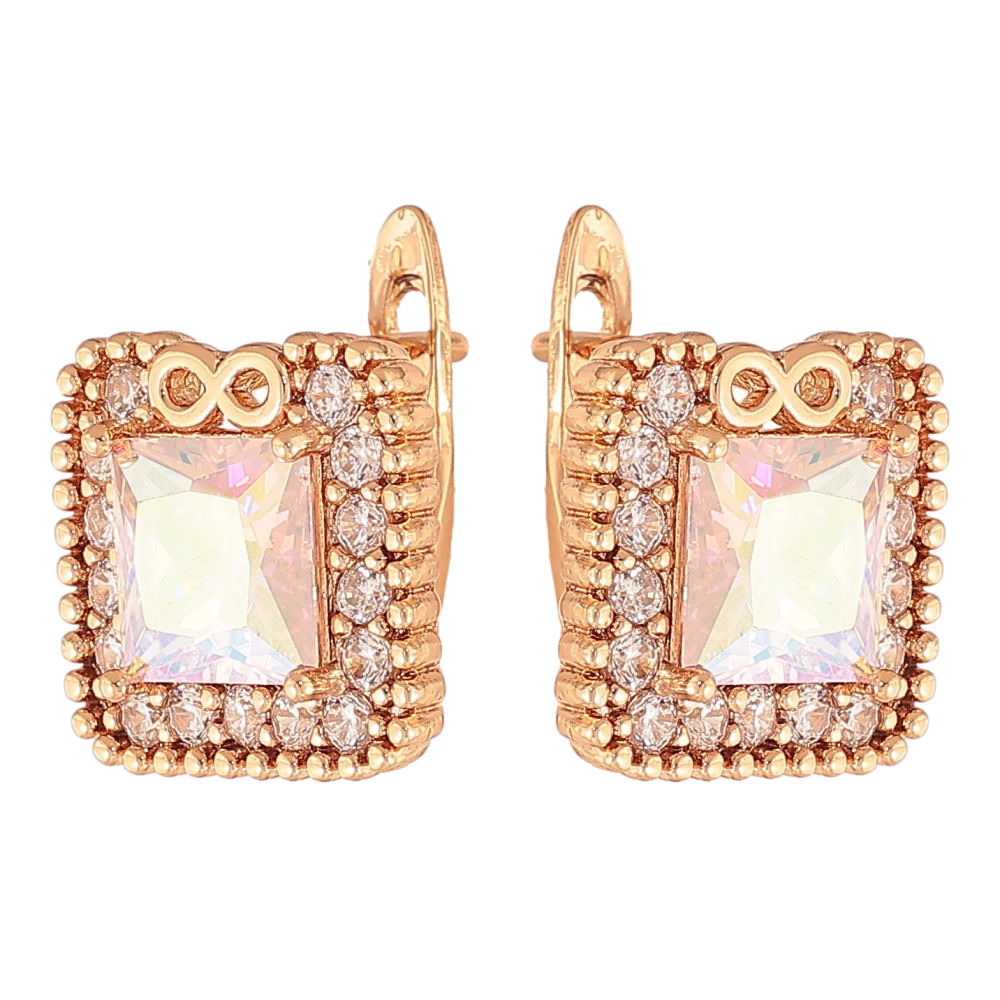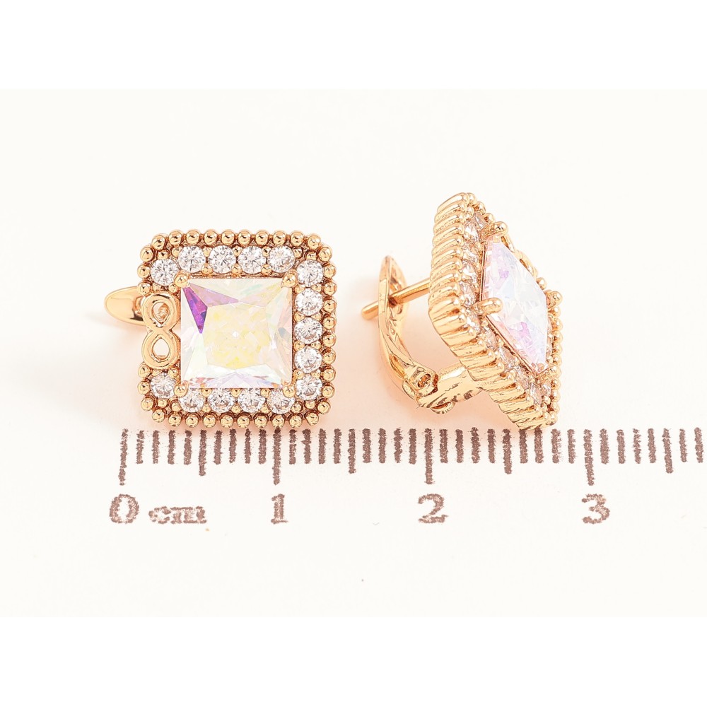 Серьги Xuping цвет Позолота 18K английский замок "Радужные кристаллы в обрамлении"
