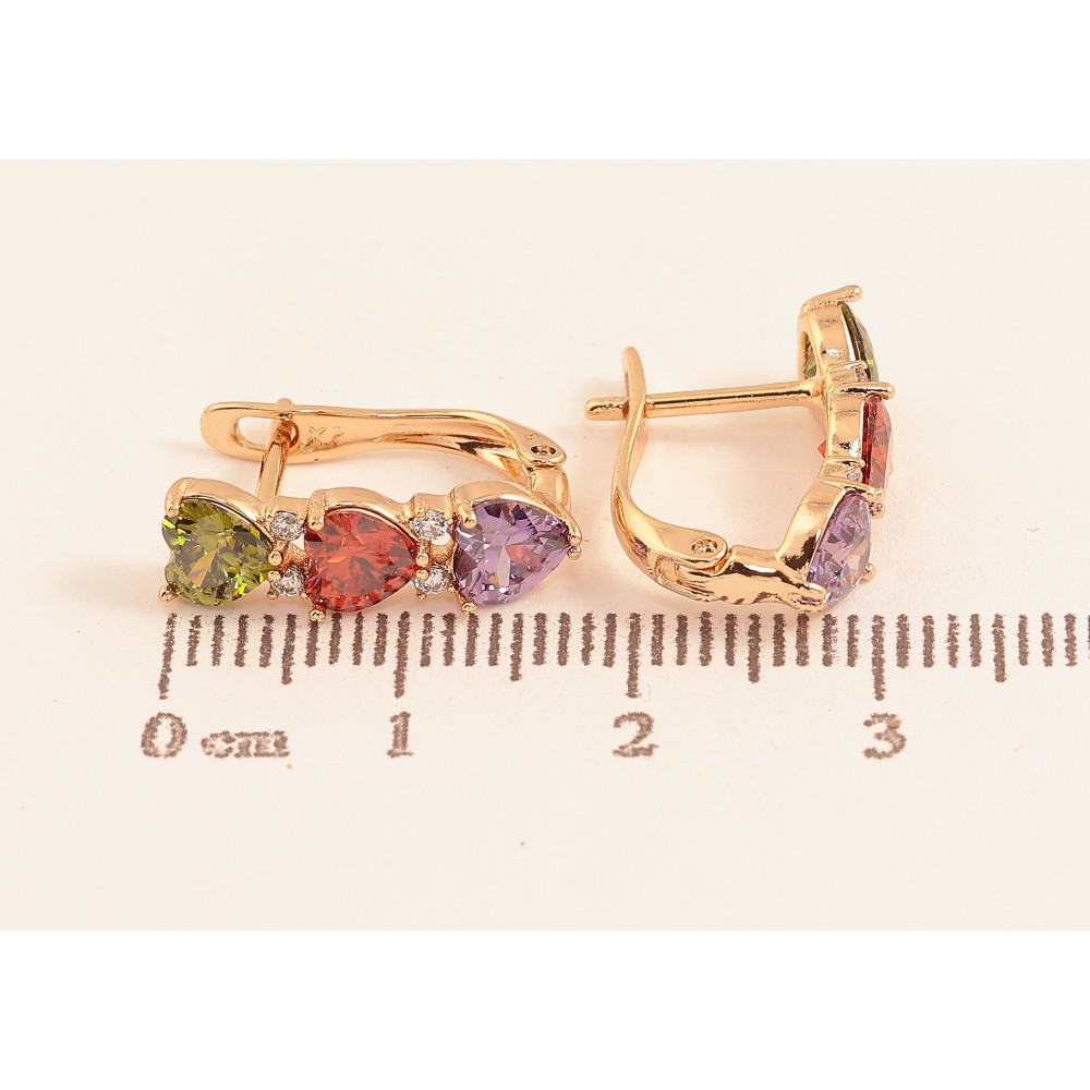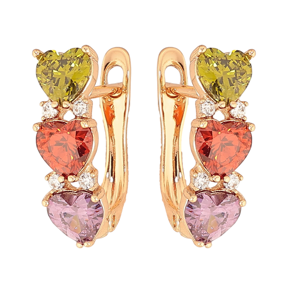 Серьги Xuping цвет Позолота 18K английский замок "Разноцветные кристальные сердечки"