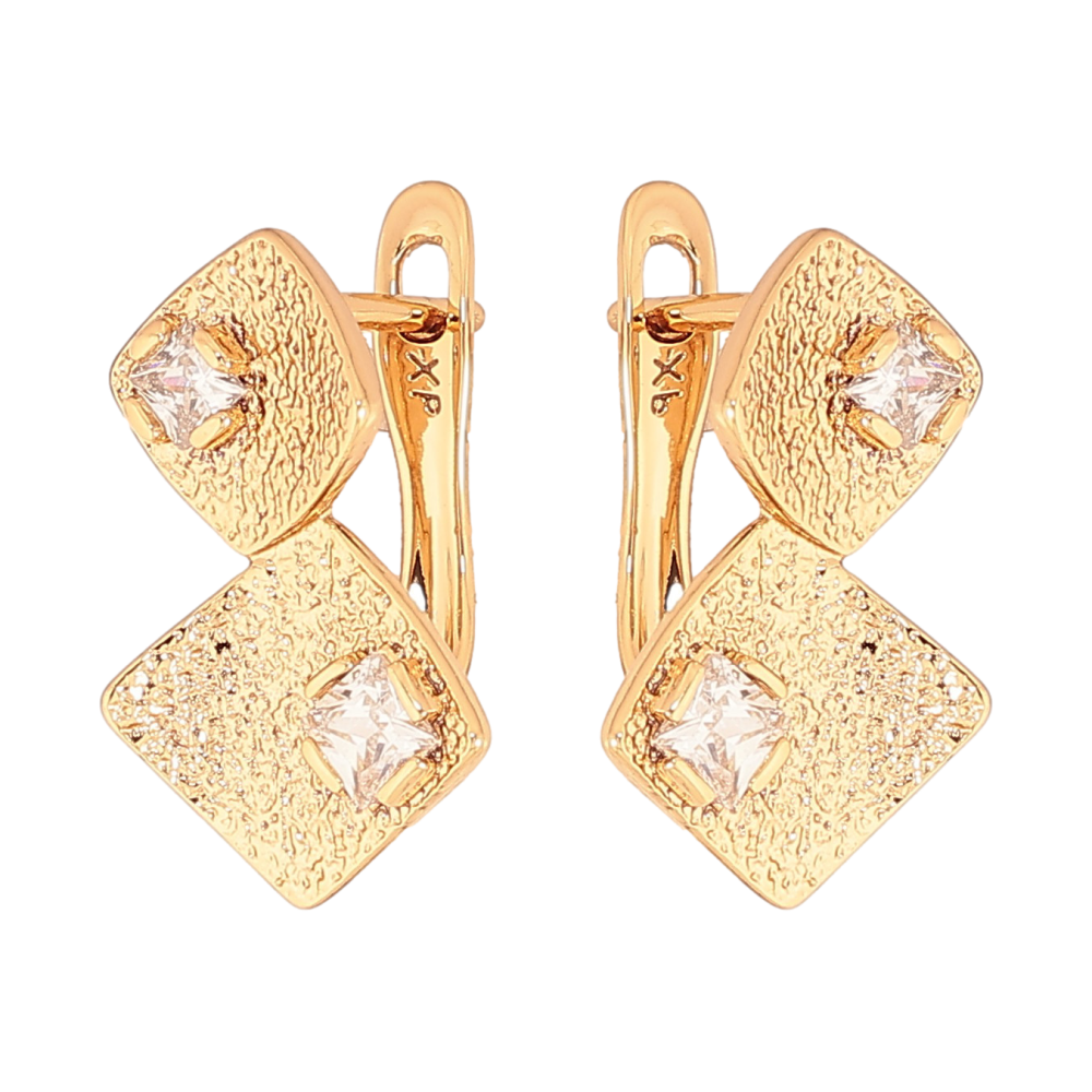 Серьги Xuping цвет Позолота 18К английский замок "Ромбовый узор с кристаллами"