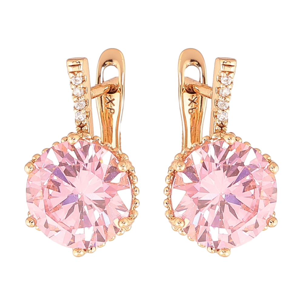 Серьги Xuping цвет Позолота 18K английский замок "Розовые кристаллы"