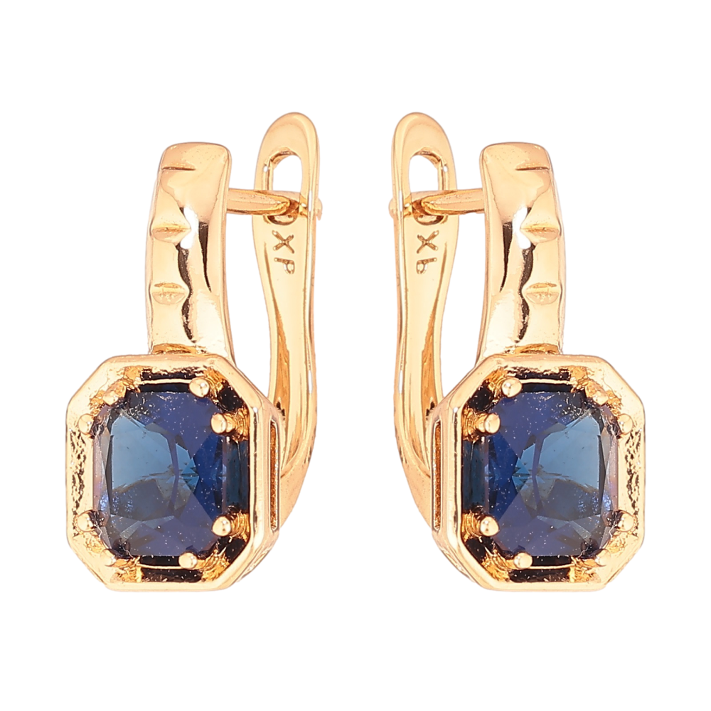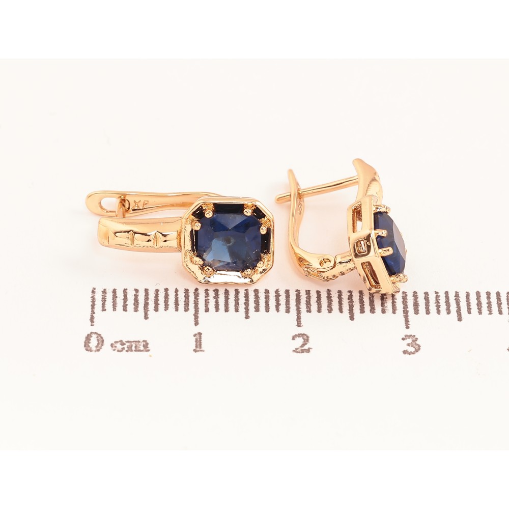Серьги Xuping цвет Позолота 18K английский замок "Синие кристаллы"