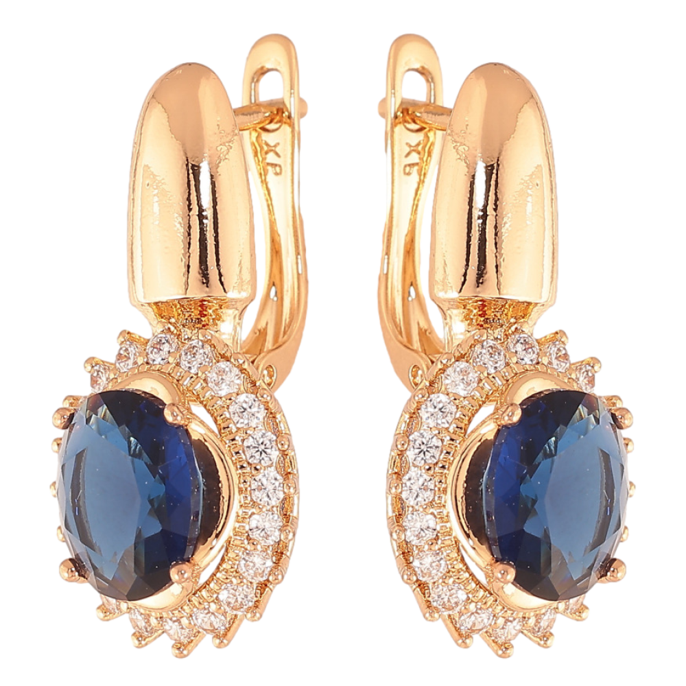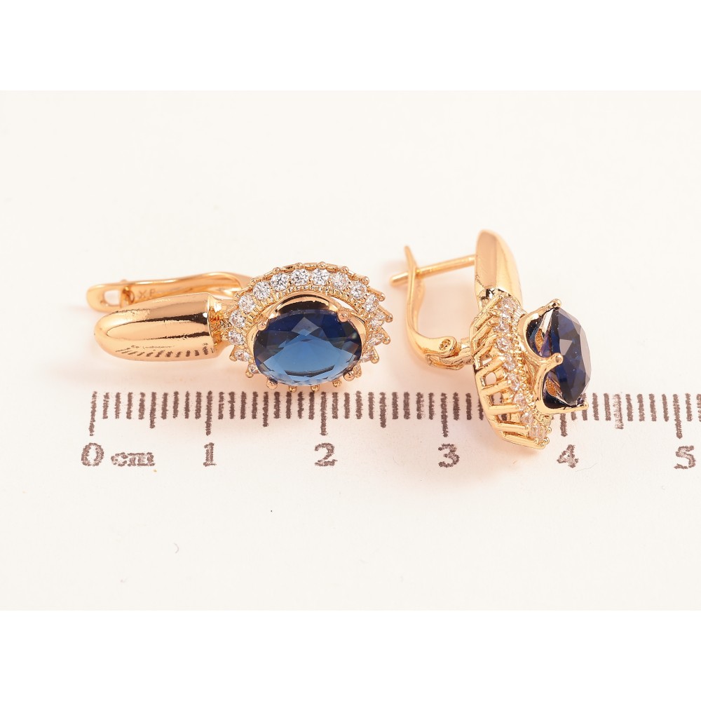 Серьги Xuping цвет Позолота 18K английский замок "Синие кристаллы в обрамлении"