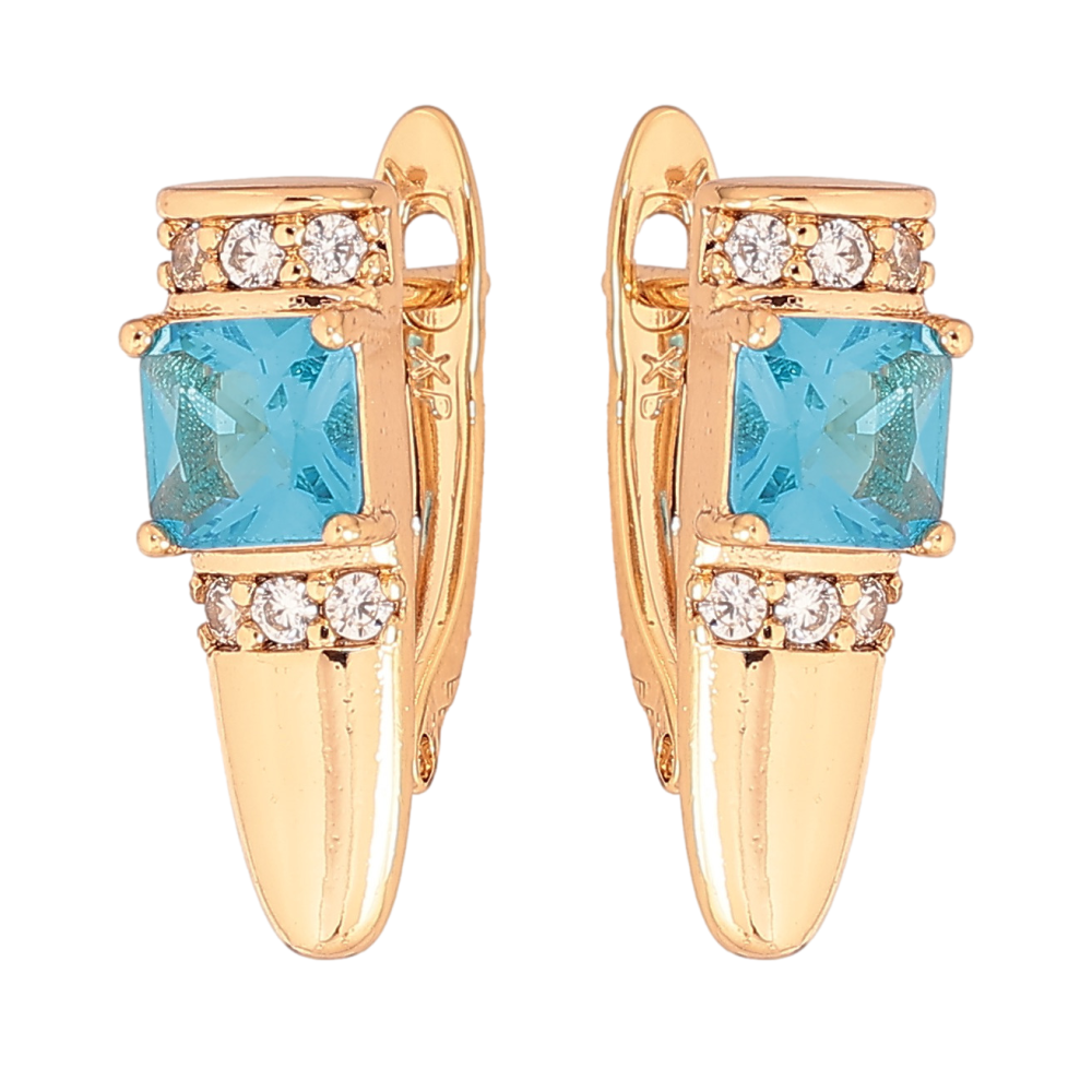 Серьги Xuping цвет Позолота 18K английский замок "Узор с голубыми кристаллами"