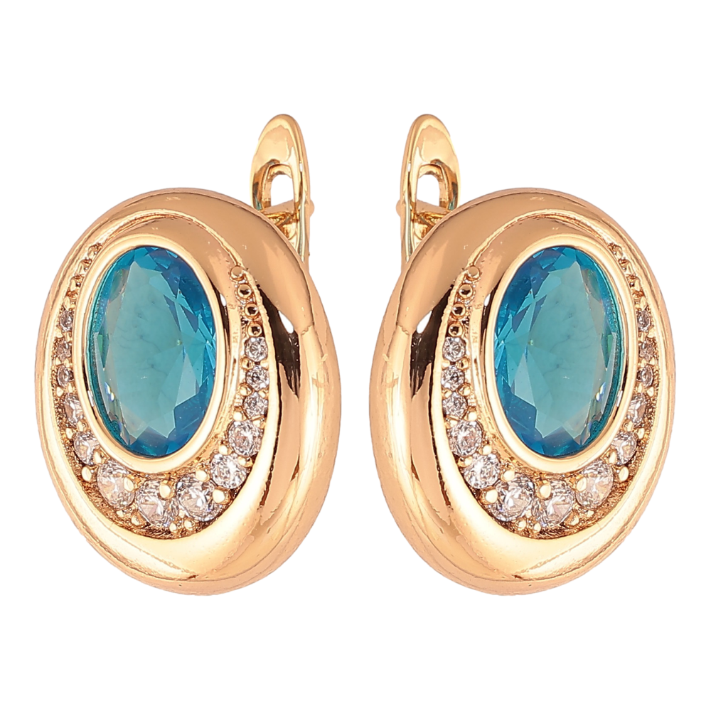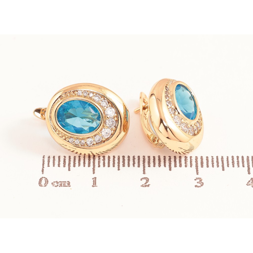 Серьги Xuping цвет Позолота 18K английский замок "Узор с голубыми кристаллами"