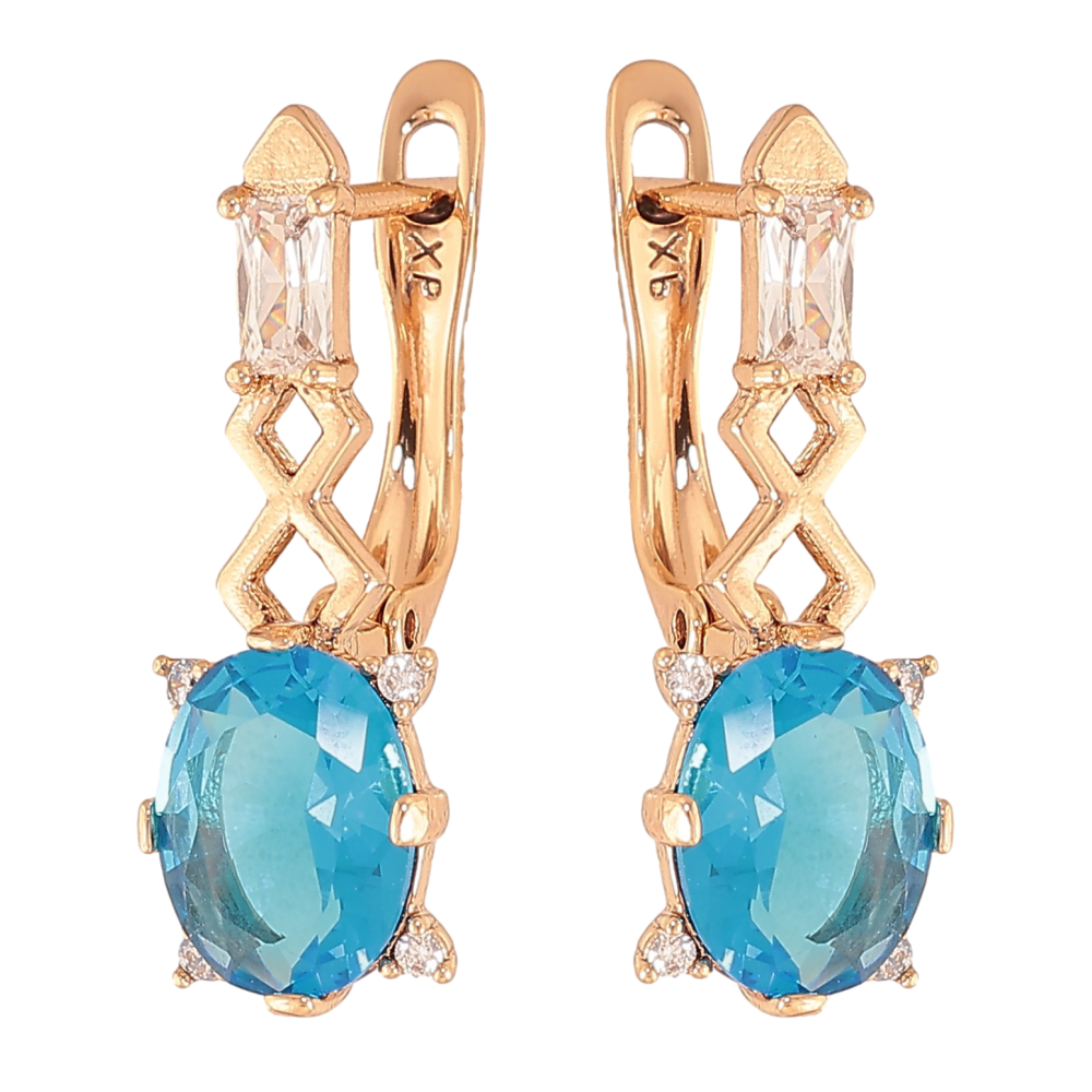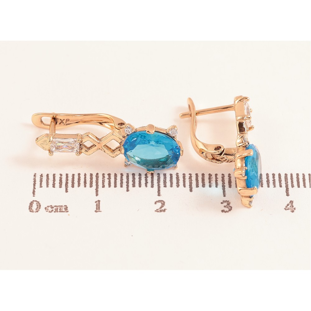 Серьги Xuping цвет Позолота 18K английский замок "Узор с голубыми кристаллами"