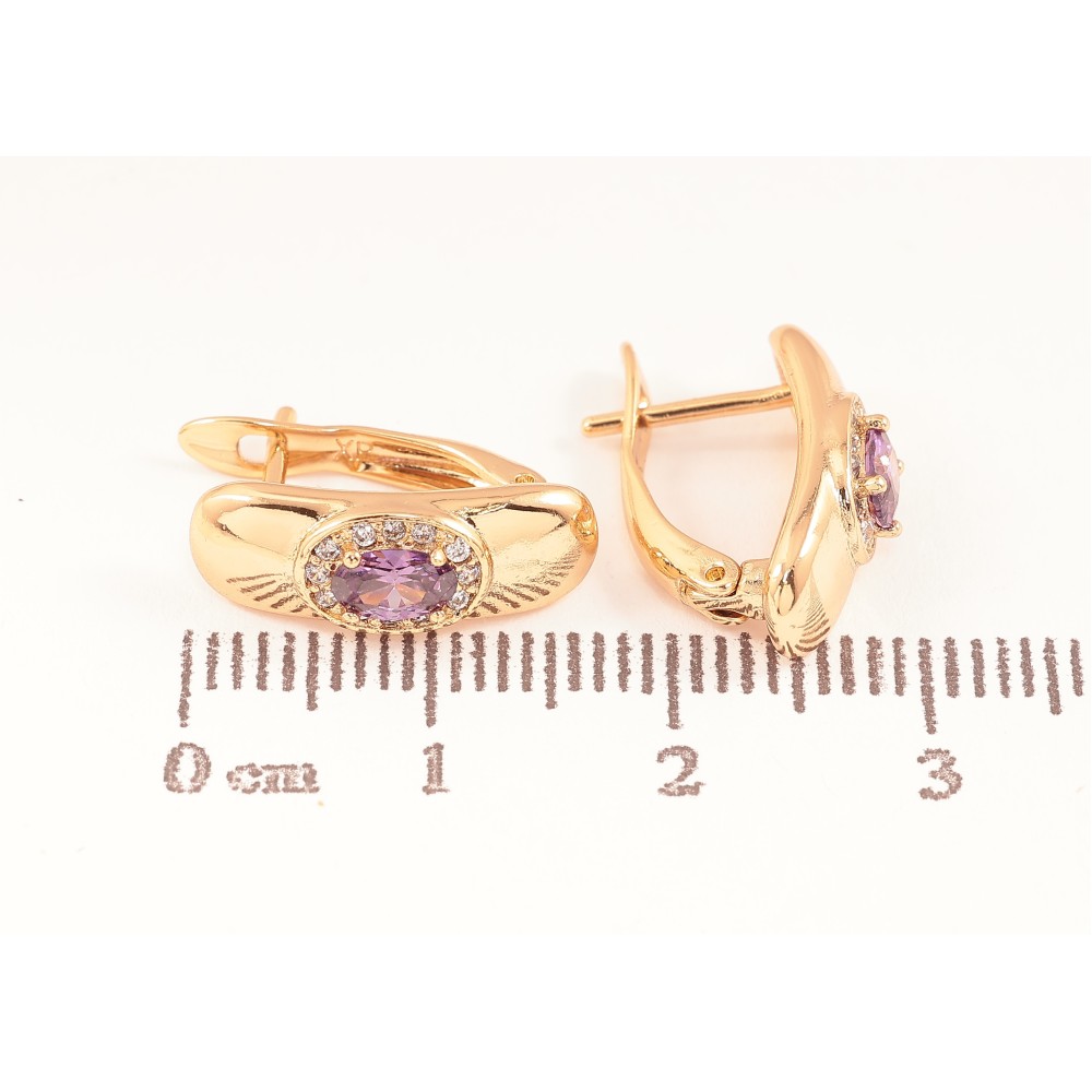 Серьги Xuping цвет Позолота 18K английский замок "Узор с сиреневыми кристаллами"