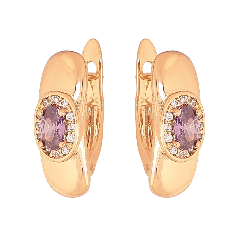 Серьги Xuping цвет Позолота 18K английский замок "Узор с сиреневыми кристаллами" фото №1