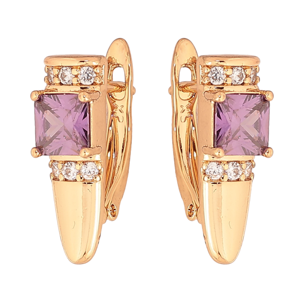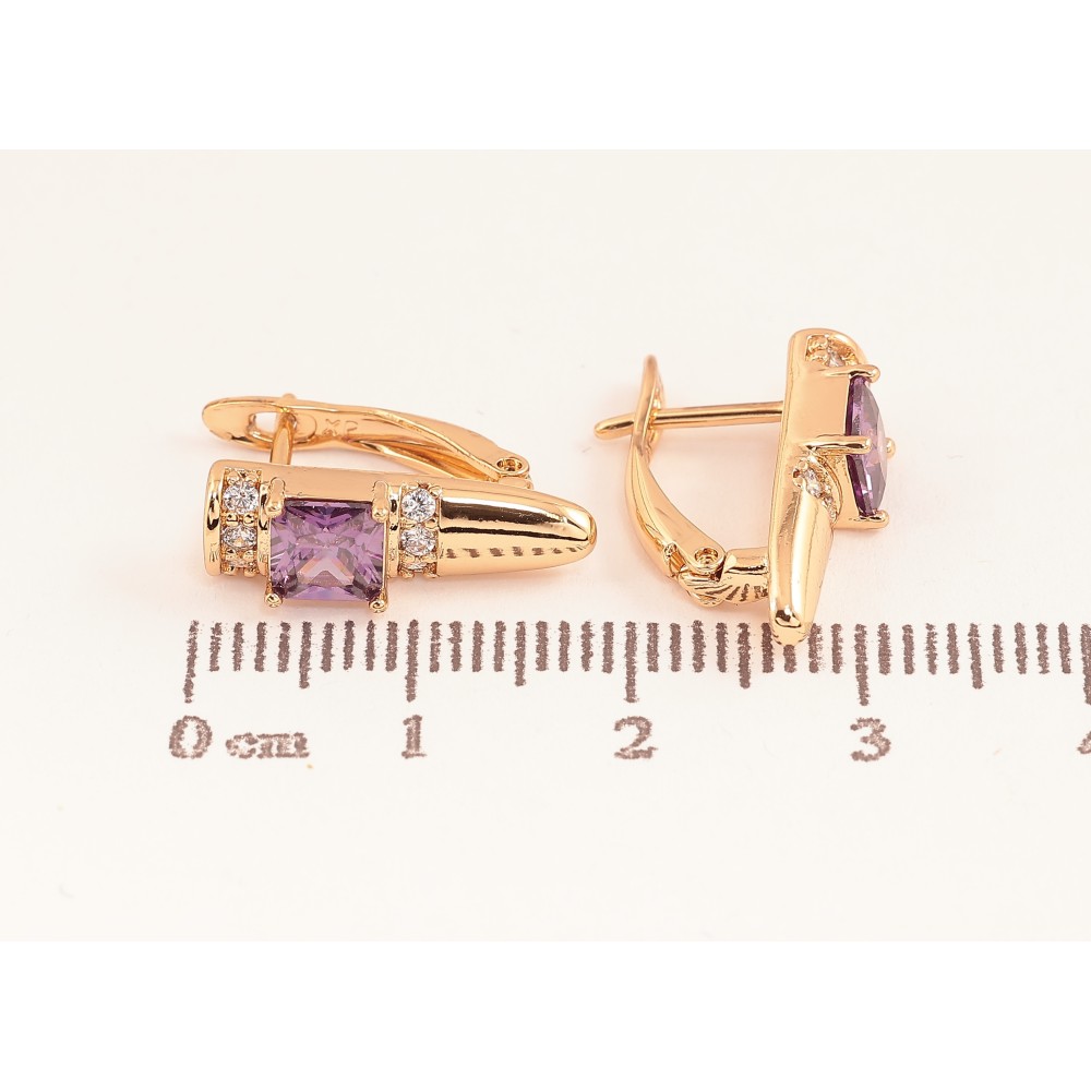 Серьги Xuping цвет Позолота 18K английский замок "Узор с сиреневыми кристаллами"
