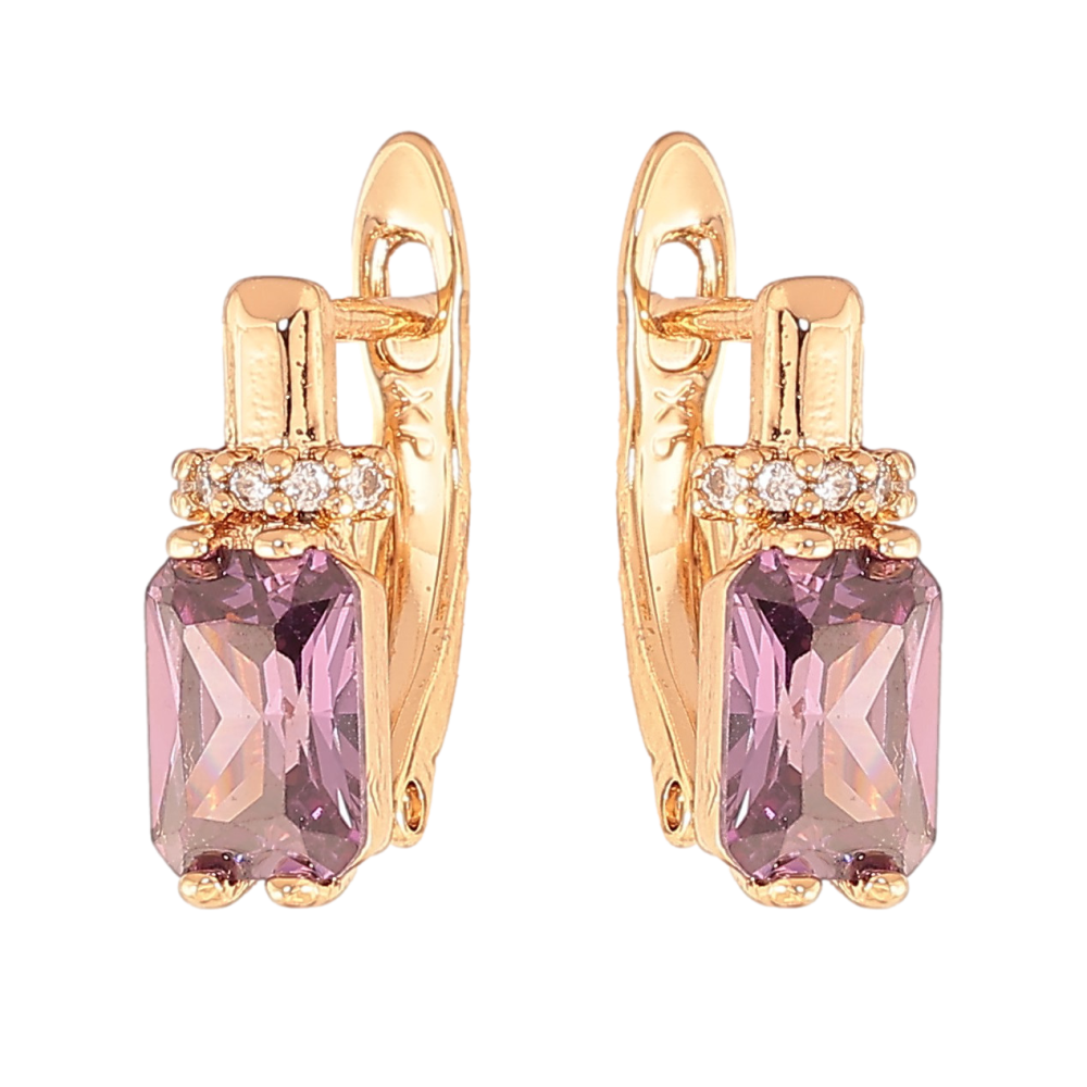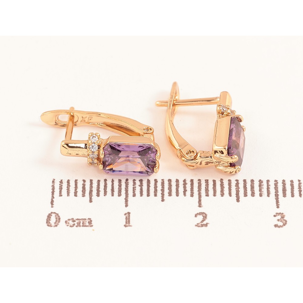 Серьги Xuping цвет Позолота 18K английский замок "Узор с сиреневыми кристаллами"