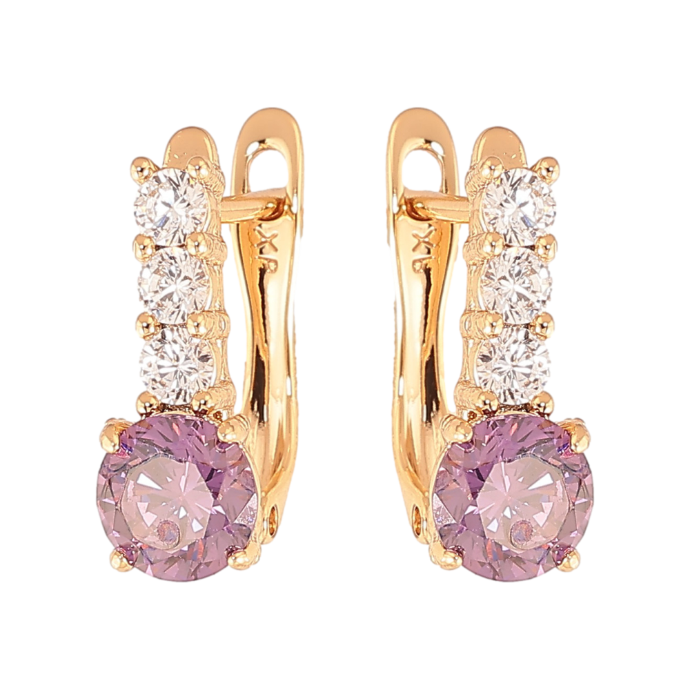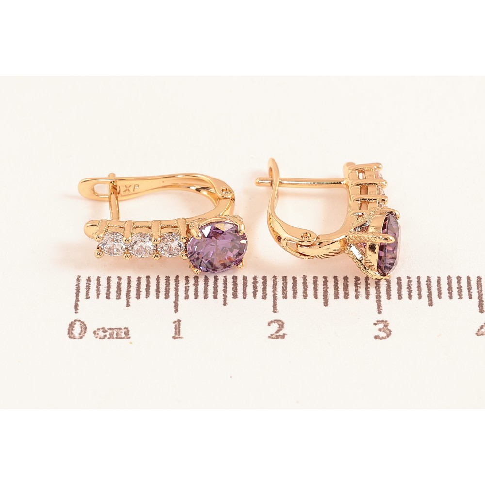 Серьги Xuping цвет Позолота 18K английский замок "Узор с сиреневыми кристаллами"