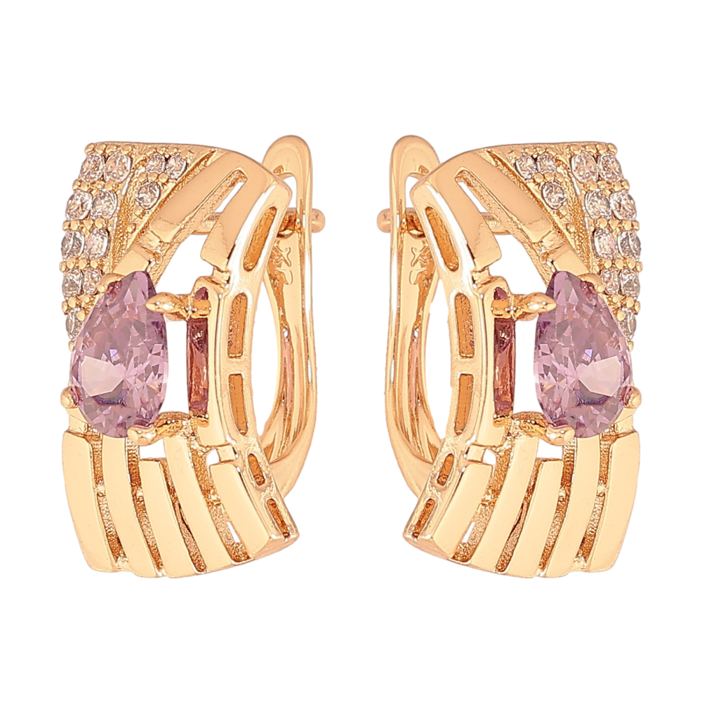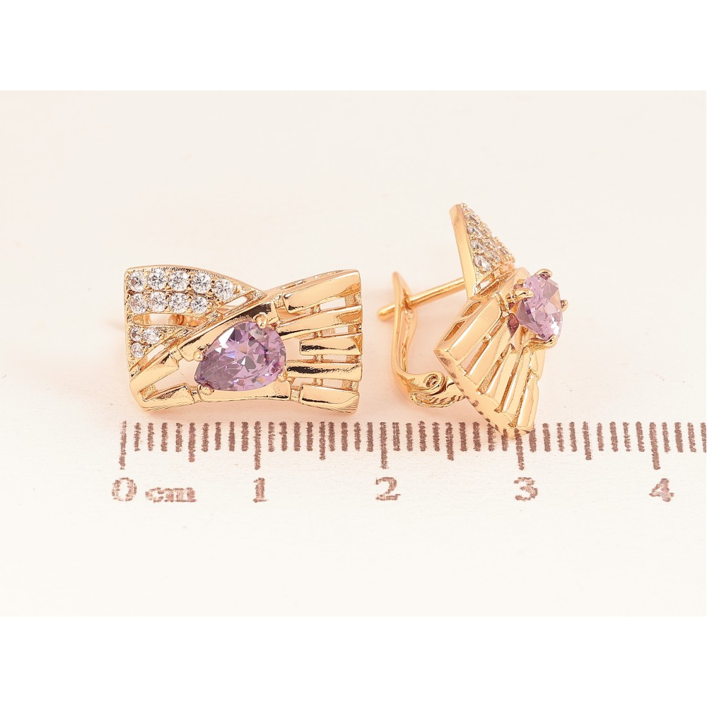 Серьги Xuping цвет Позолота 18К английский замок "Узор с сиреневыми кристаллами"