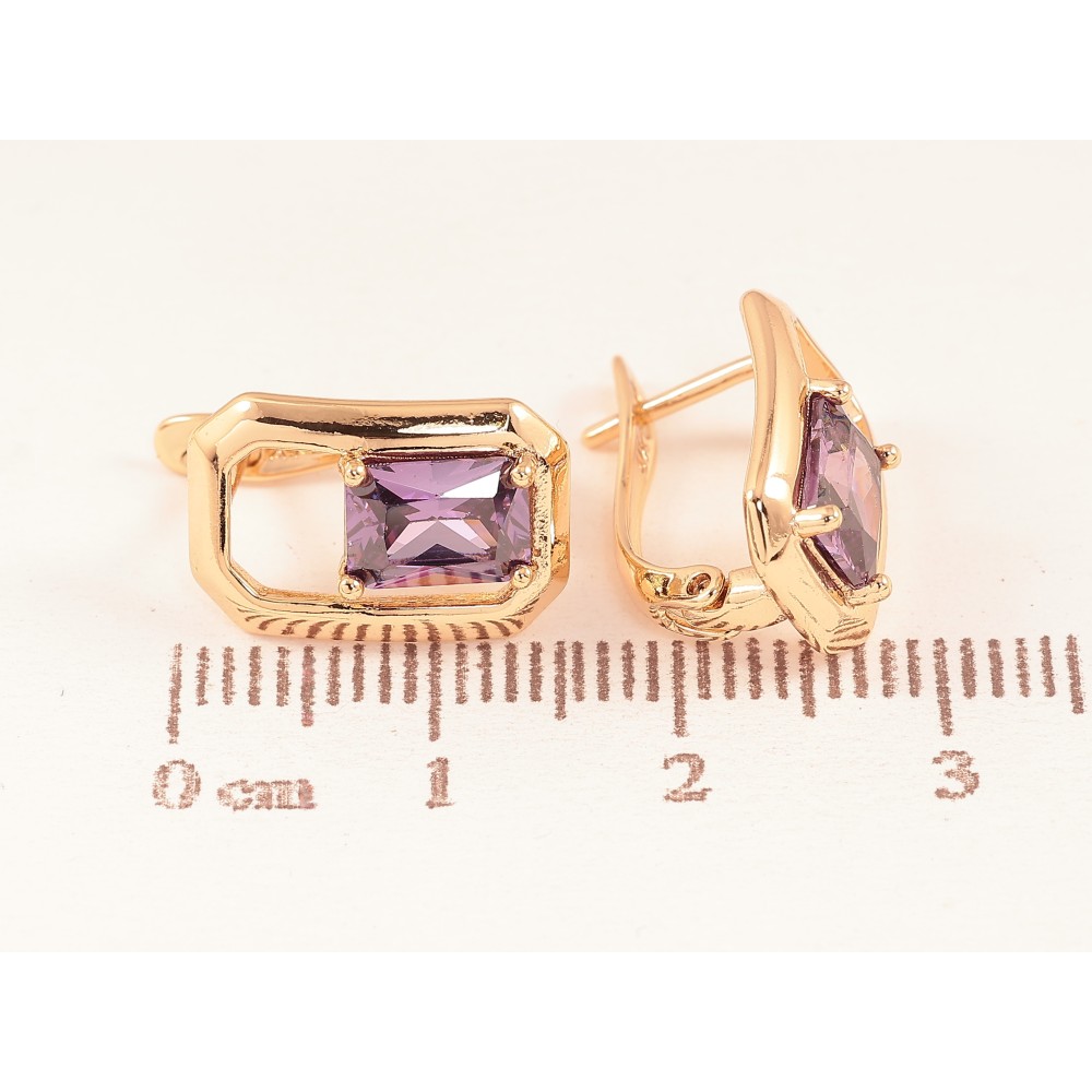 Серьги Xuping цвет Позолота 18К английский замок "Узор с сиреневыми кристаллами" фото №1