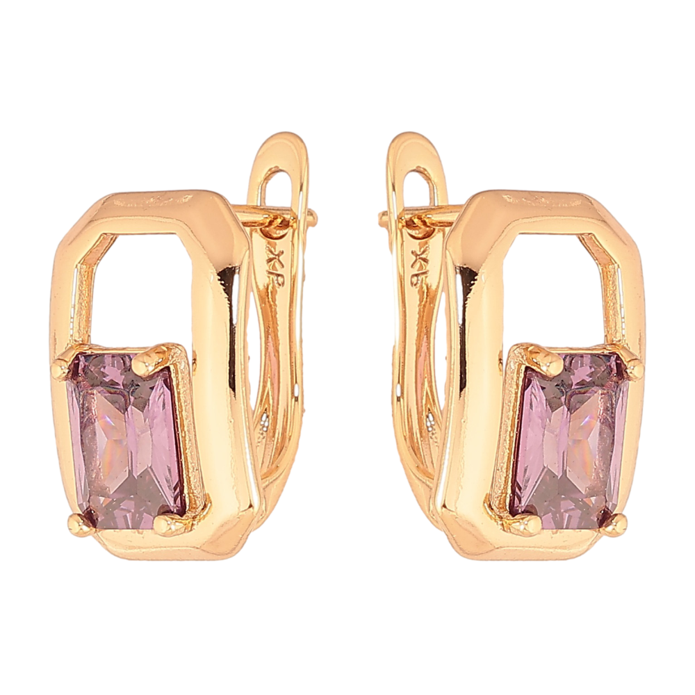 Серьги Xuping цвет Позолота 18К английский замок "Узор с сиреневыми кристаллами"