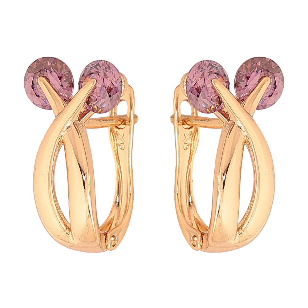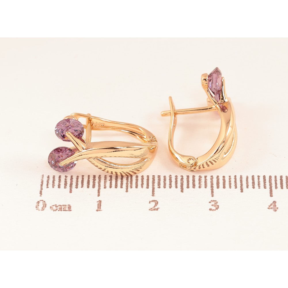 Серьги Xuping цвет Позолота 18К английский замок "Узор с сиреневыми кристаллами"