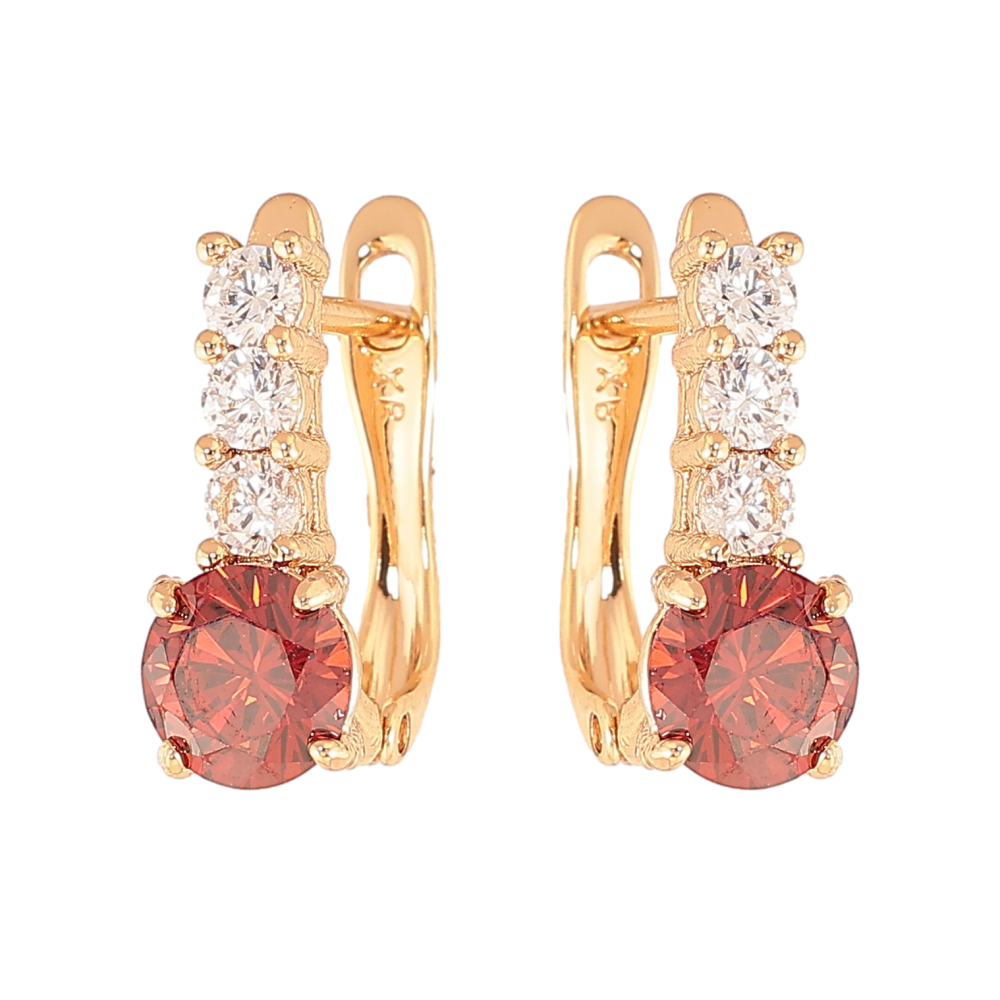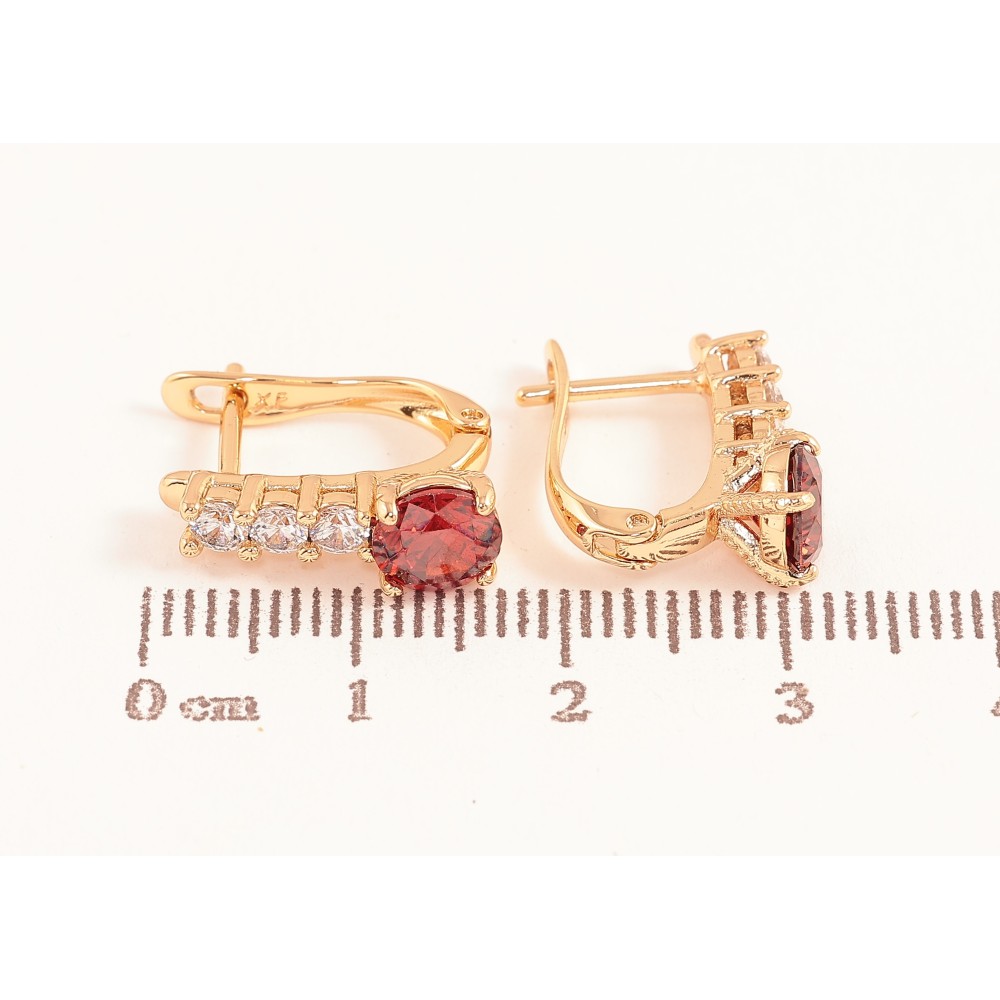 Серьги Xuping цвет Позолота 18K английский замок "Узор с красными кристаллами"