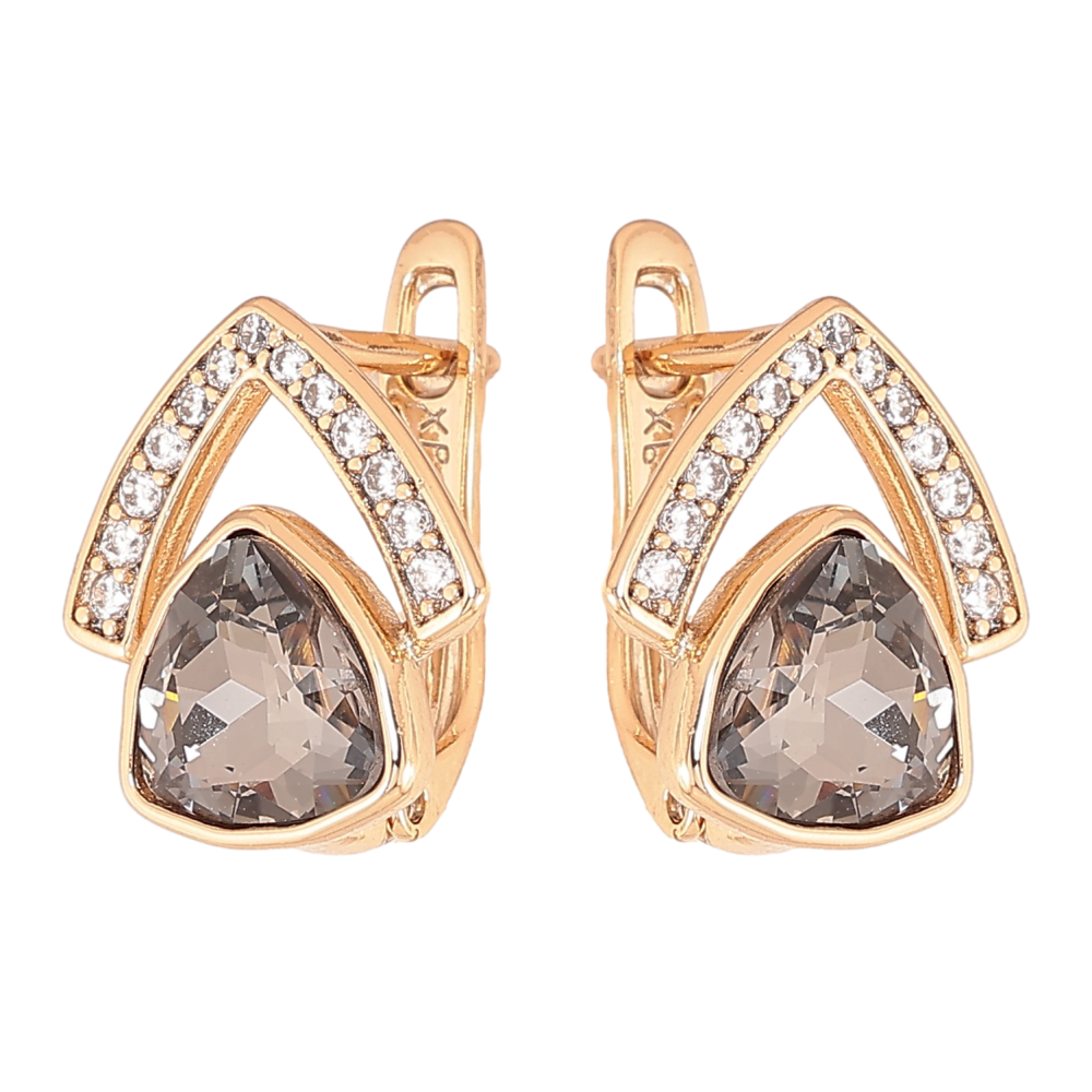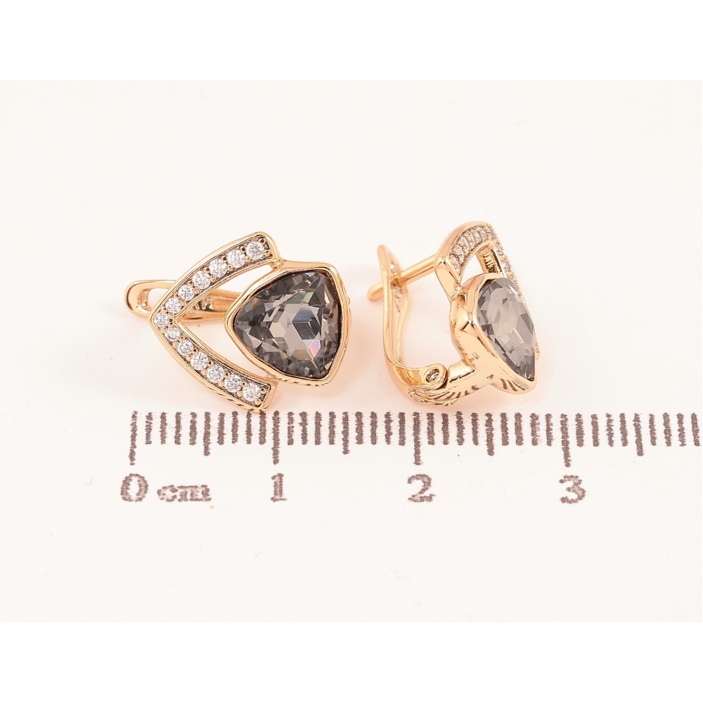Серьги Xuping цвет Позолота 18K английский замок "Узор с черными кристаллами"