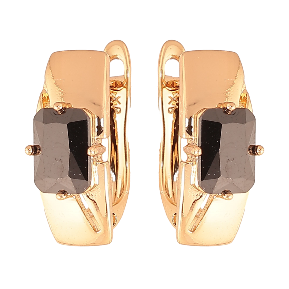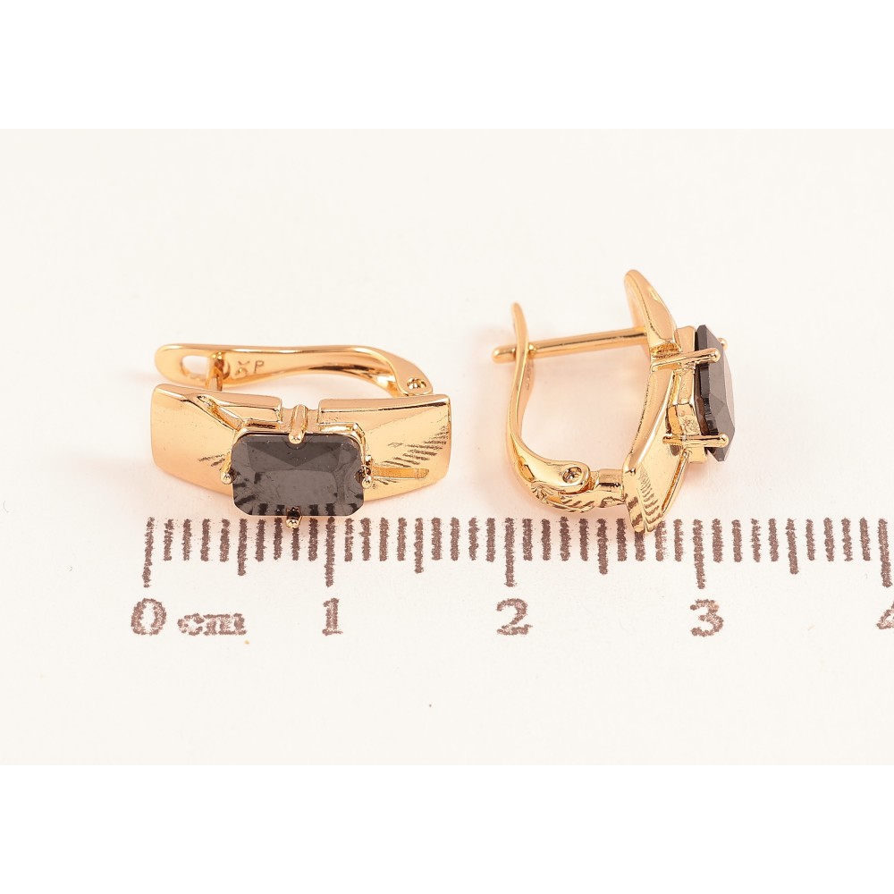 Серьги Xuping цвет Позолота 18K английский замок "Узор с черными кристаллами"