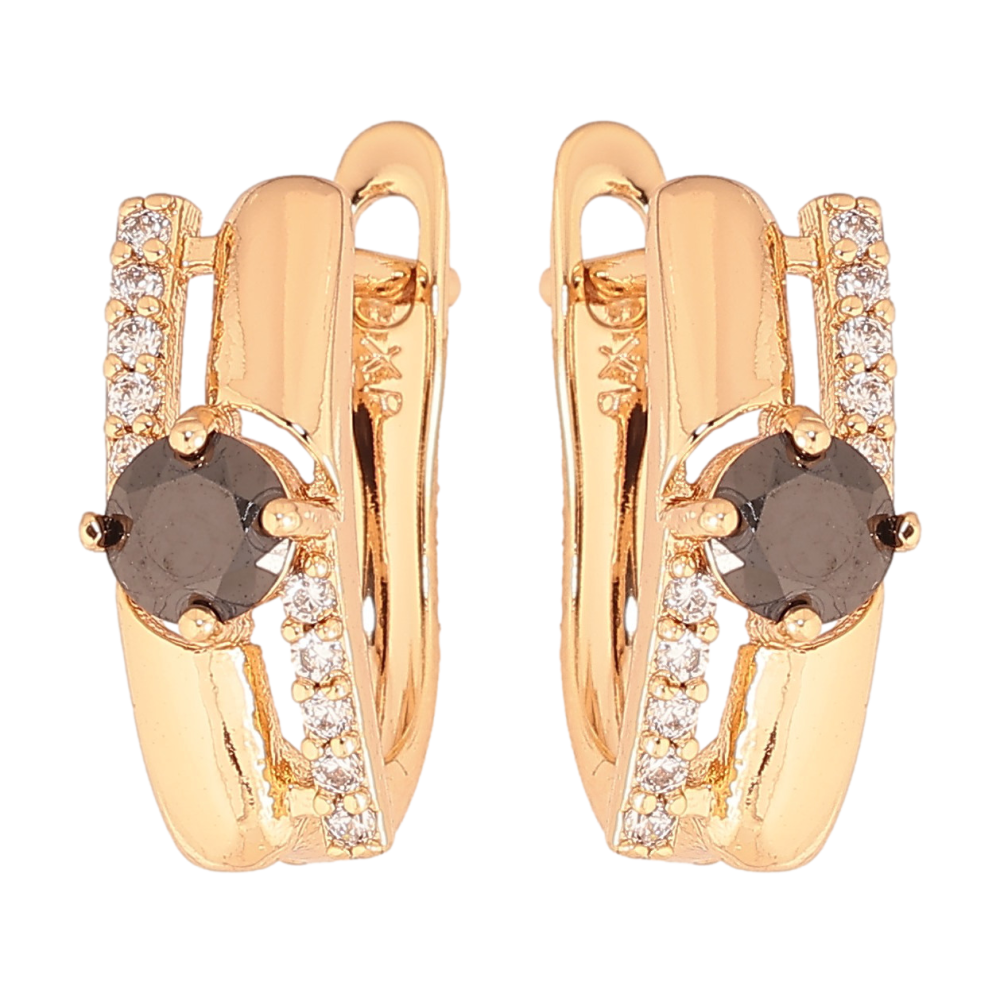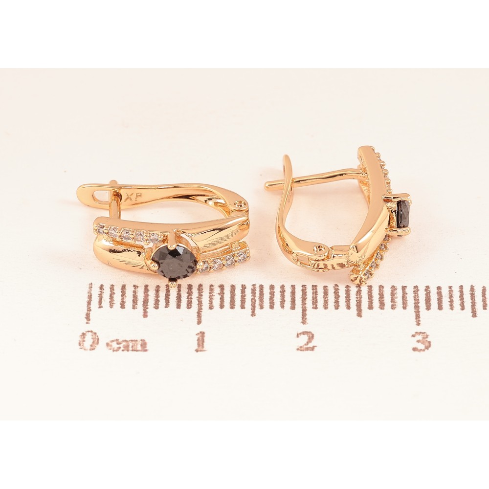Серьги Xuping цвет Позолота 18К английский замок "Узор с черными кристаллами"