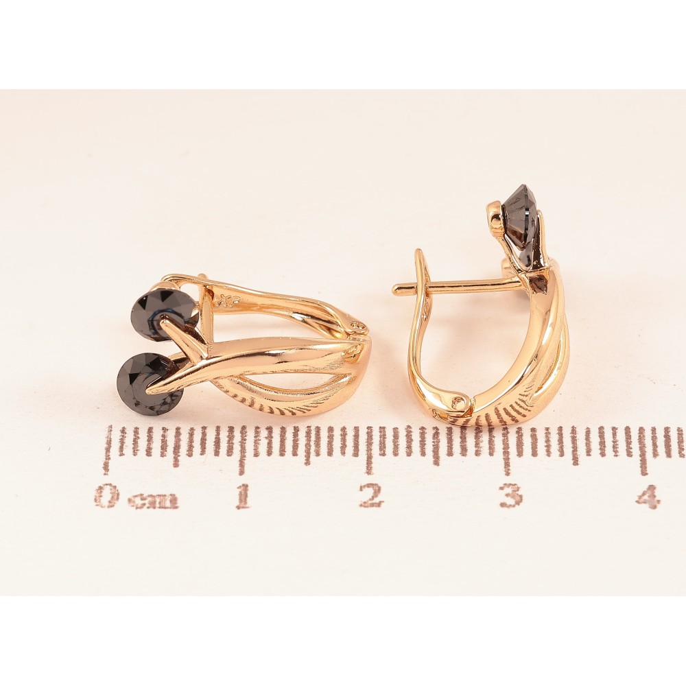 Серьги Xuping цвет Позолота 18К английский замок "Узор с черными кристаллами"