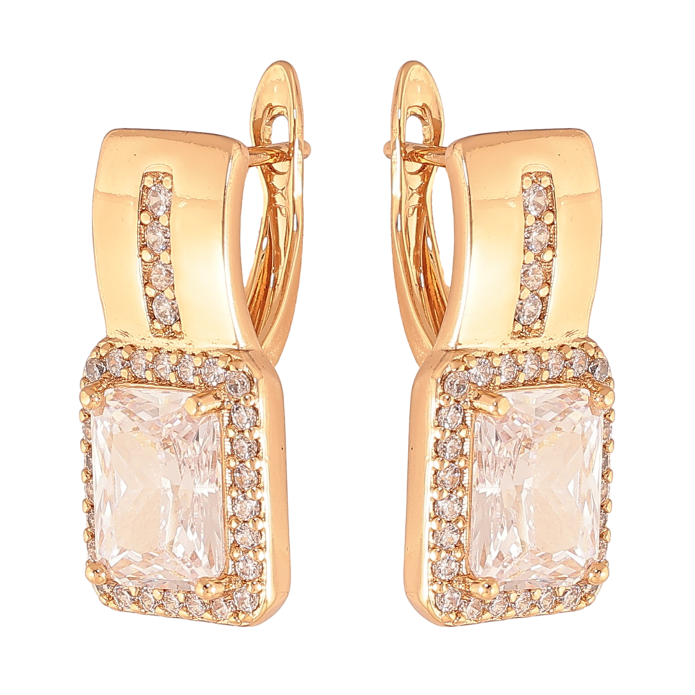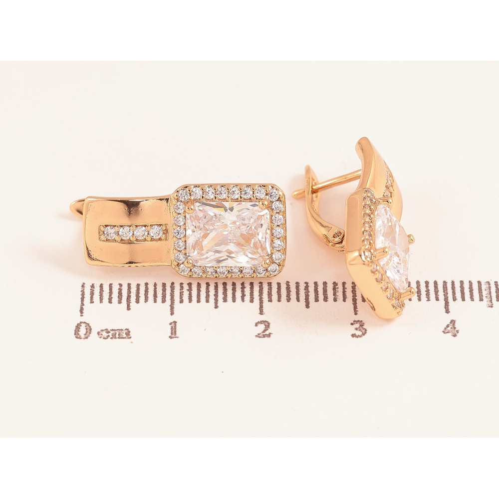 Серьги Xuping цвет Позолота 18K английский замок "Узор с кристаллами"