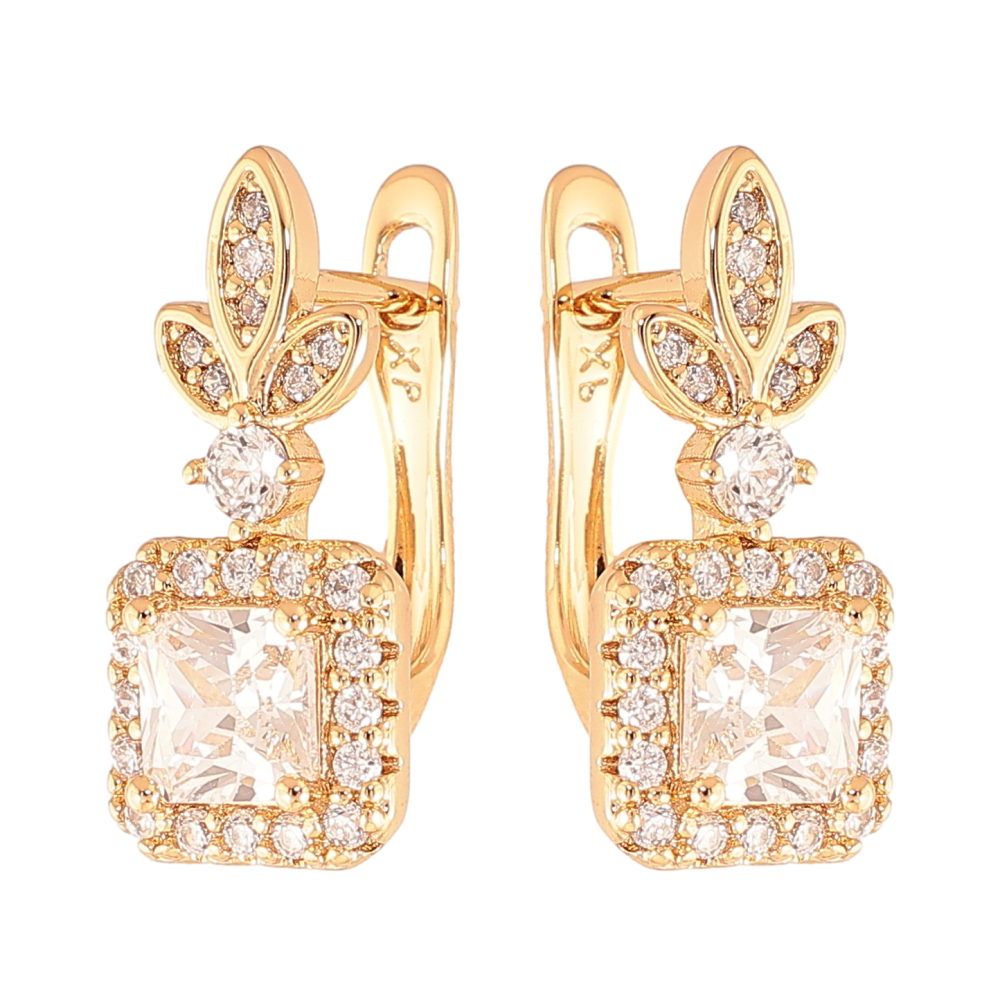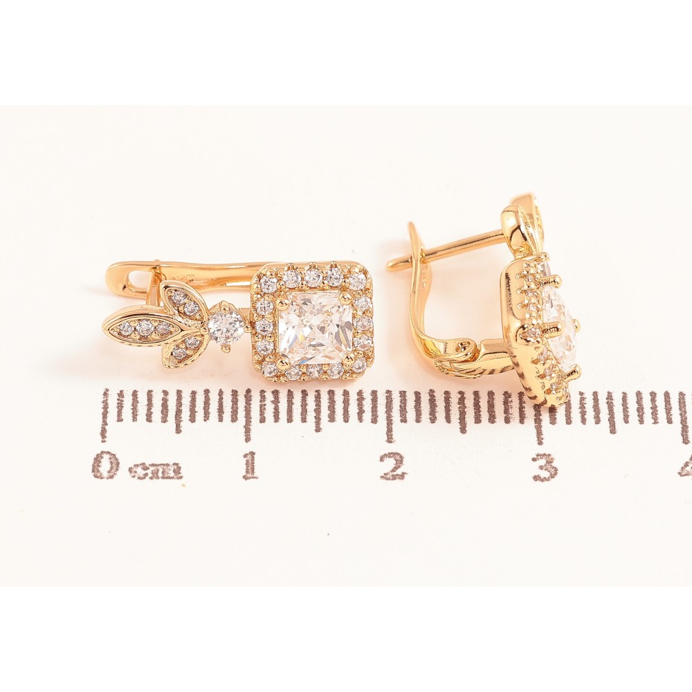 Серьги Xuping цвет Позолота 18K английский замок "Узор с кристаллами"