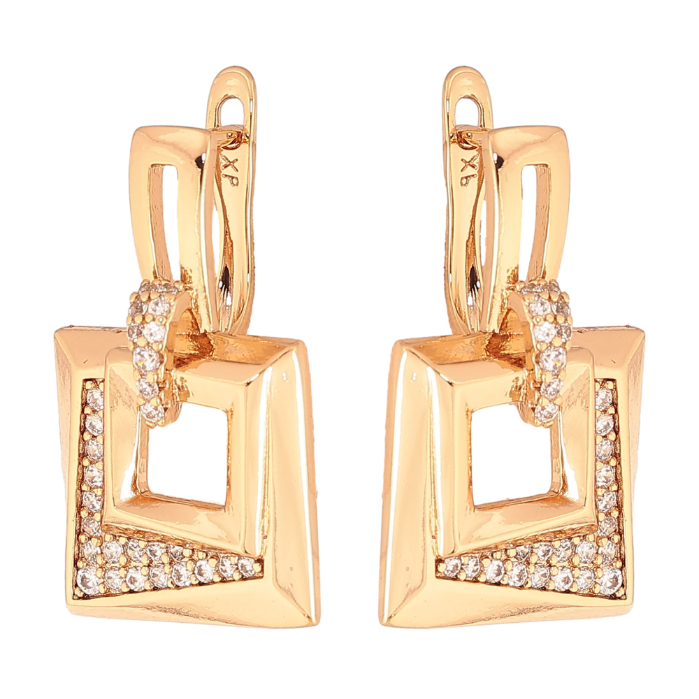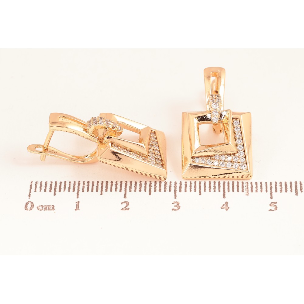 Серьги Xuping цвет Позолота 18K английский замок "Узор с кристаллами" фото №1