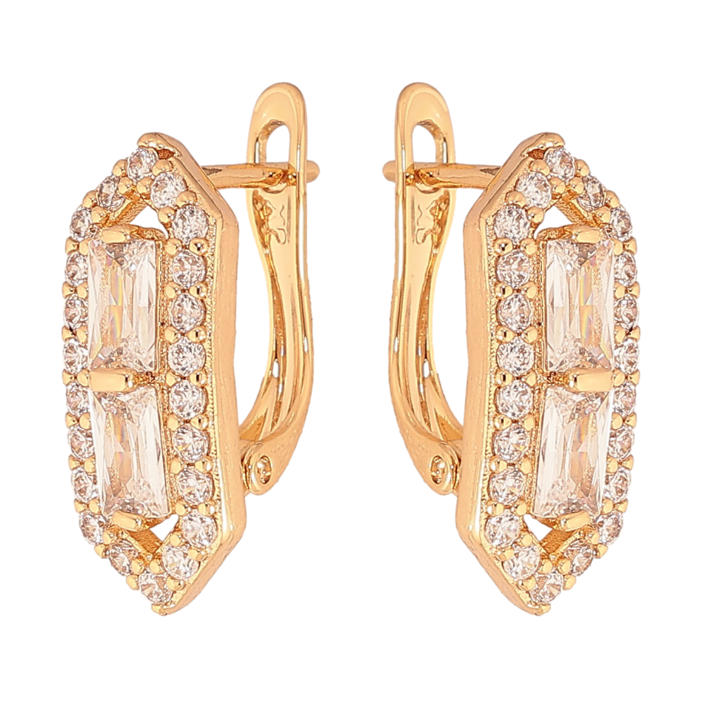 Серьги Xuping цвет Позолота 18K английский замок "Узор с кристаллами"