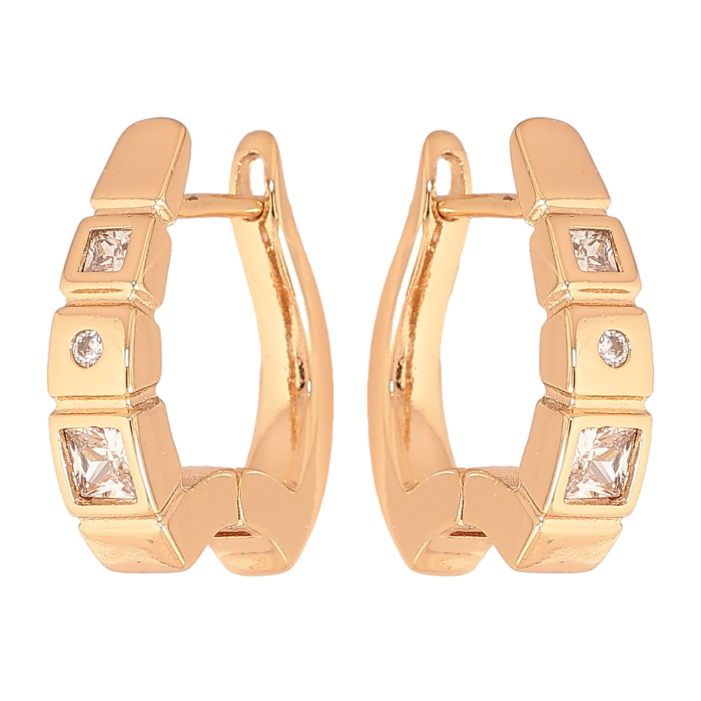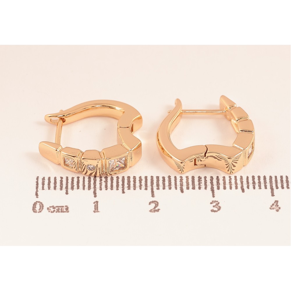 Серьги Xuping цвет Позолота 18К английский замок "Узор с кристаллами" фото №1