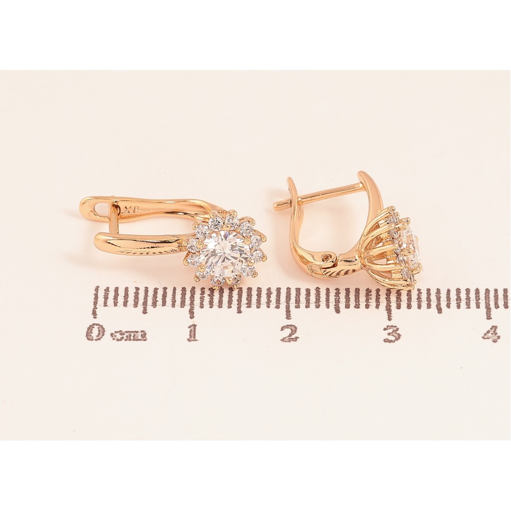 Серьги Xuping цвет Позолота 18К английский замок "Узор с кристаллами" фото №1