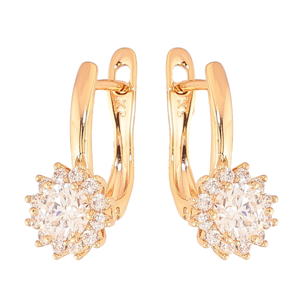 HIT Серьги Xuping цвет Позолота 18К английский замок "Узор с кристаллами" фото №1