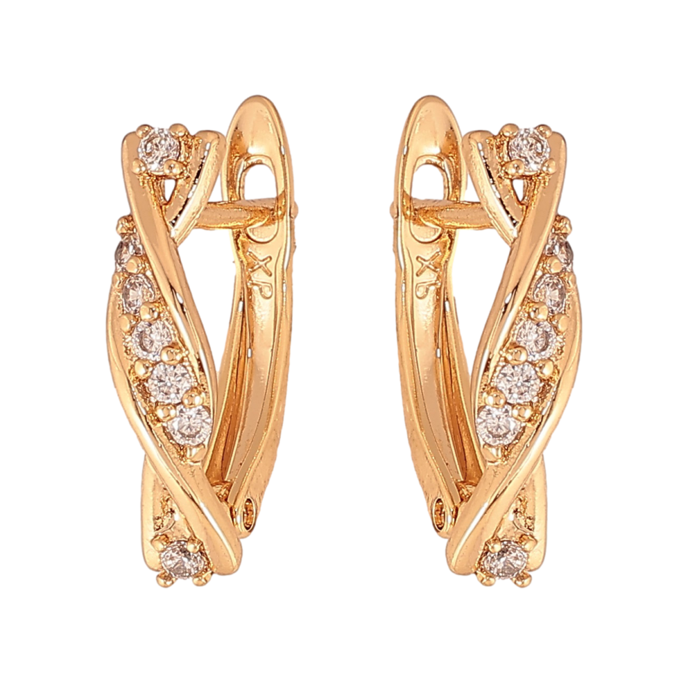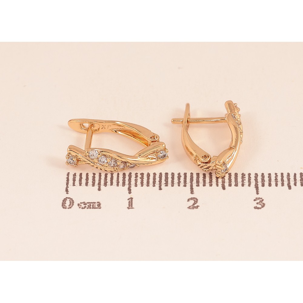 Серьги Xuping цвет Позолота 18К английский замок "Узор с кристаллами" фото №1