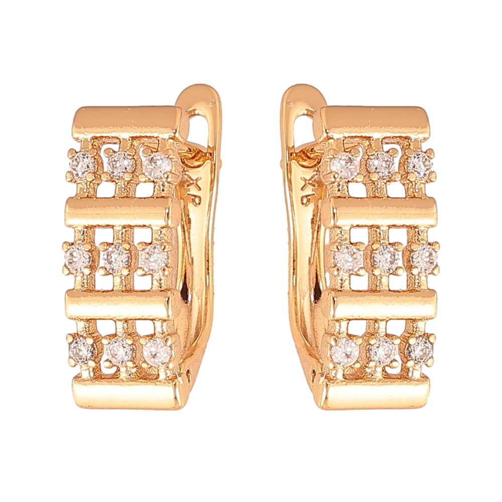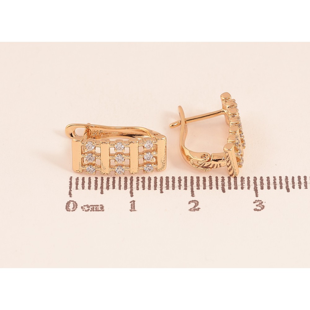 Серьги Xuping цвет Позолота 18К английский замок "Узор с кристаллами"
