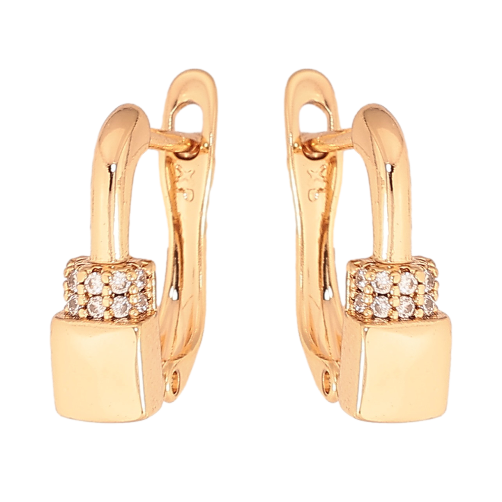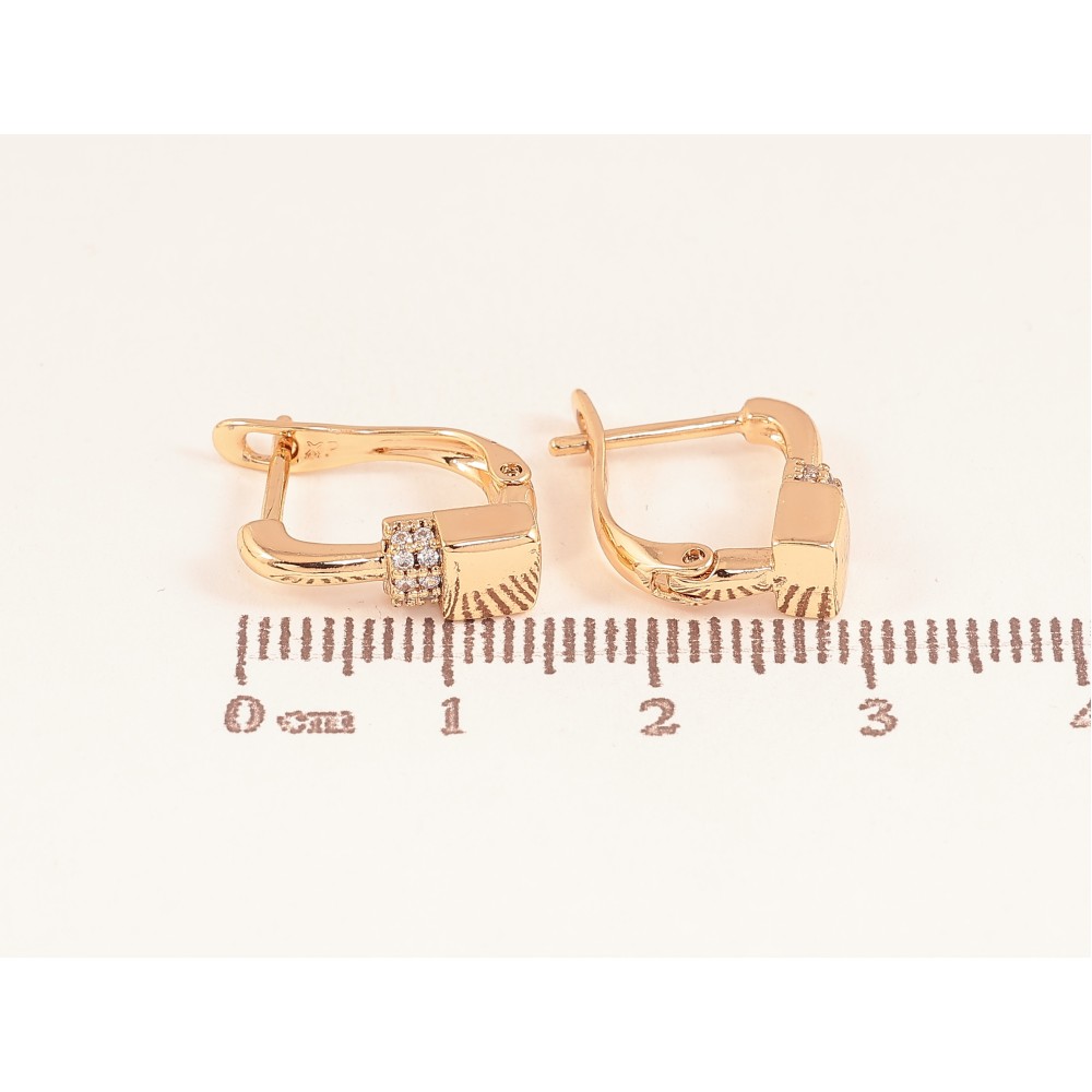 Серьги Xuping цвет Позолота 18К английский замок "Узор с кристаллами"