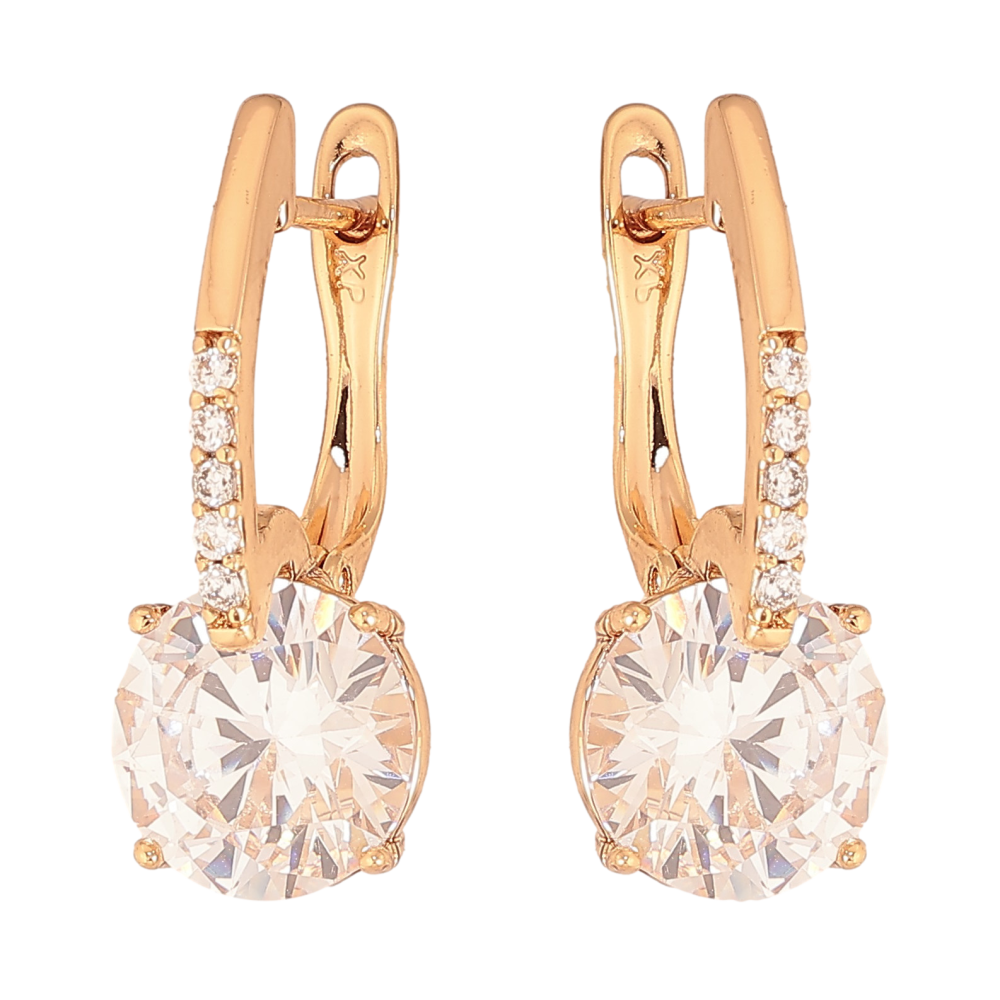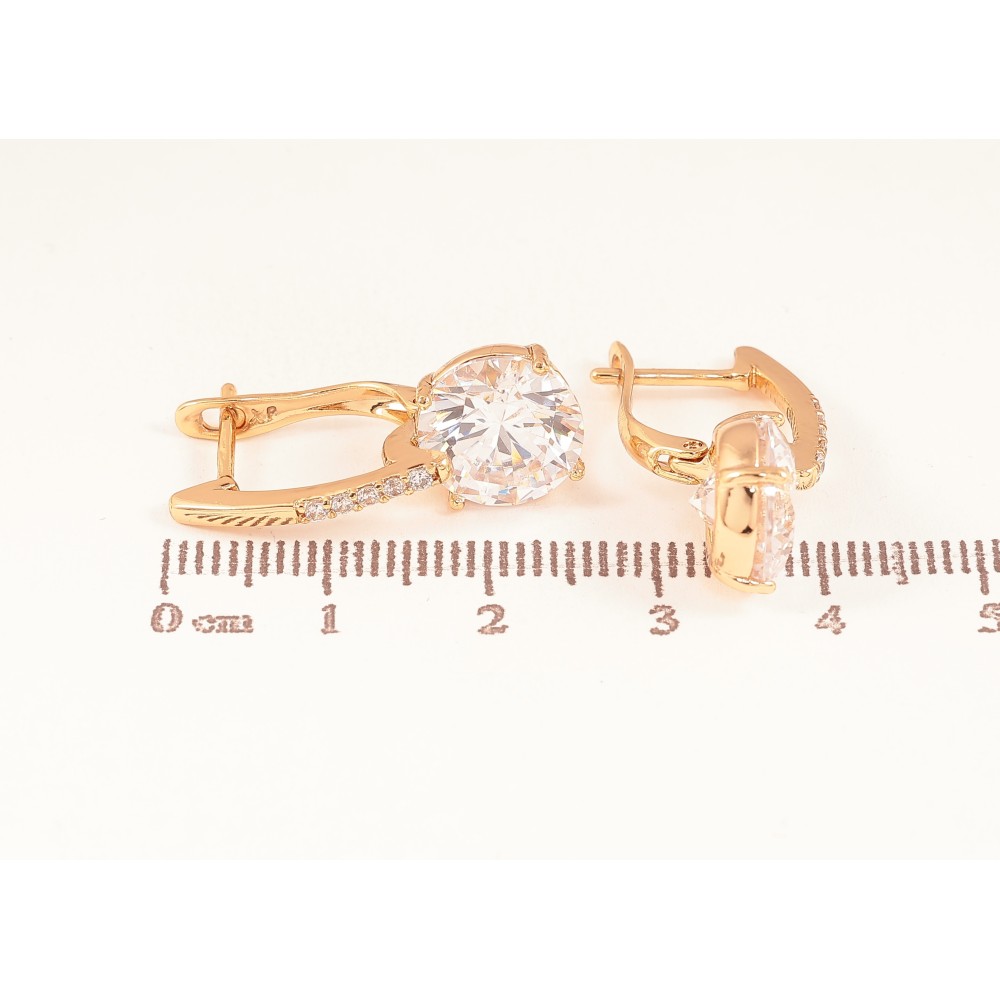 Серьги Xuping цвет Позолота 18К английский замок "Узор с кристаллами"
