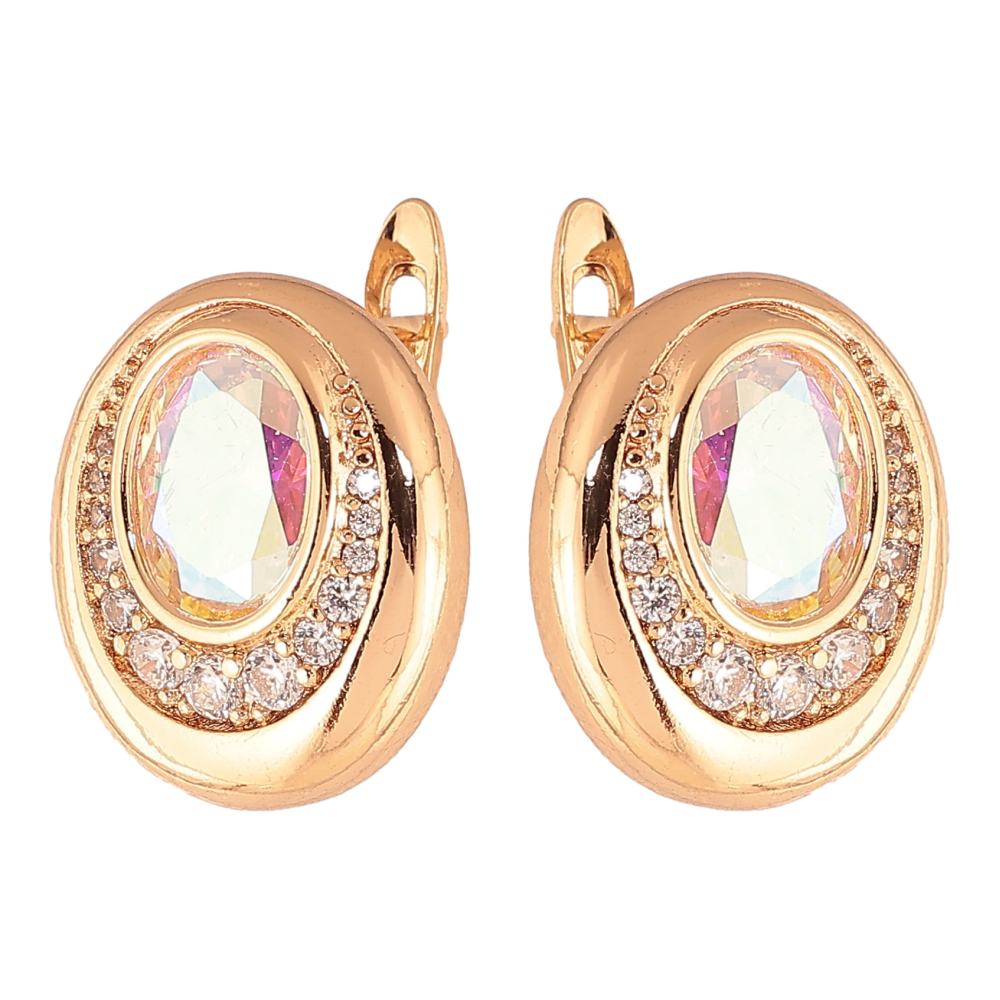Серьги Xuping цвет Позолота 18K английский замок "Узор с радужными кристаллами"