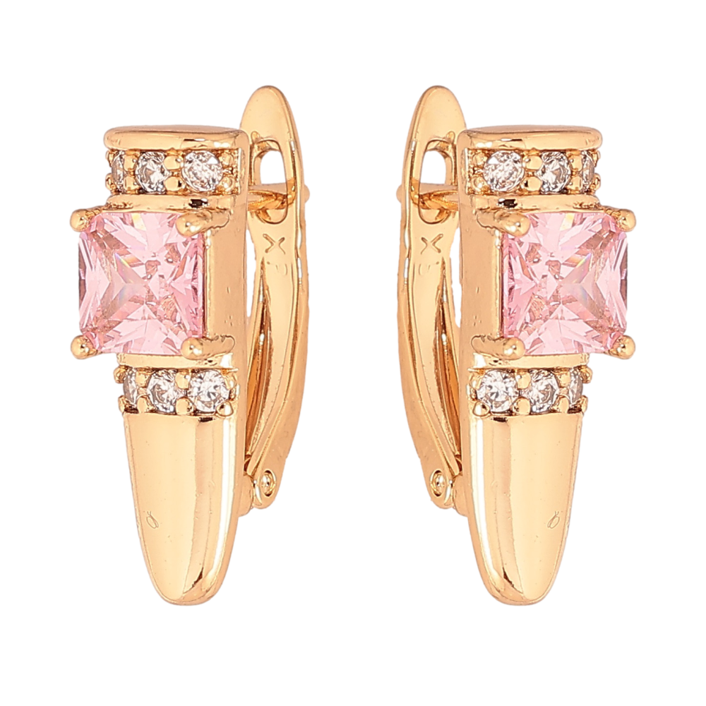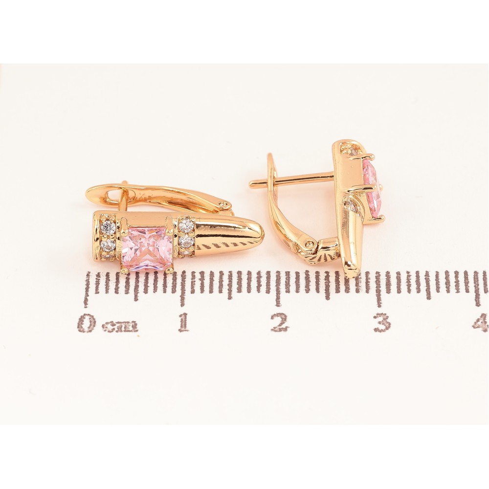 Серьги Xuping цвет Позолота 18K английский замок "Узор с розовыми кристаллами"