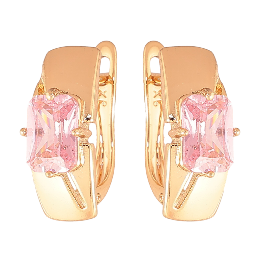 Серьги Xuping цвет Позолота 18K английский замок "Узор с розовыми кристаллами" фото №1