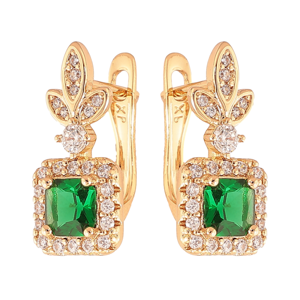 Серьги Xuping цвет Позолота 18K английский замок "Узор с зелеными кристаллами"