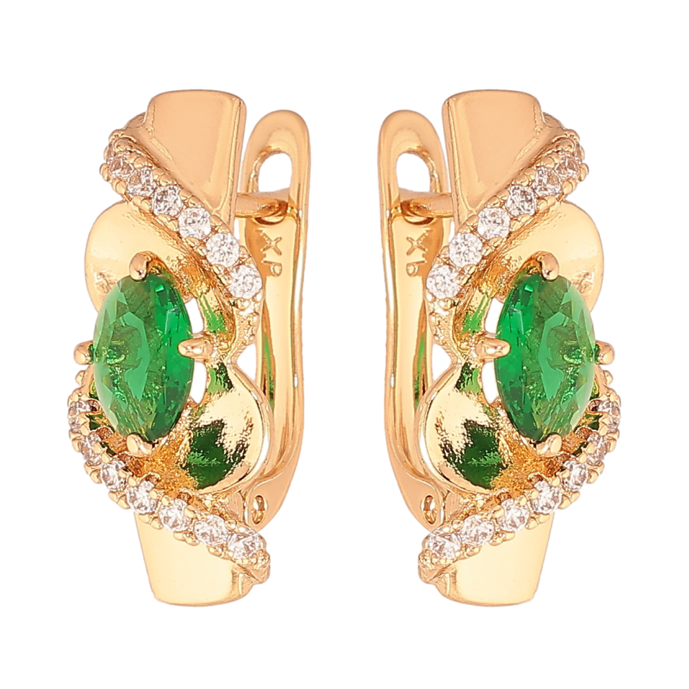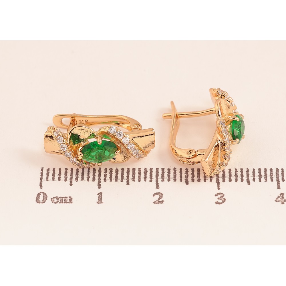 Серьги Xuping цвет Позолота 18К английский замок "Узор с зелеными кристаллами"