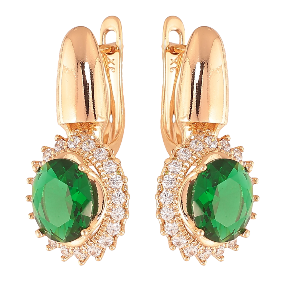 Серьги Xuping цвет Позолота 18K английский замок "Зеленые кристаллы в обрамлении" фото №1