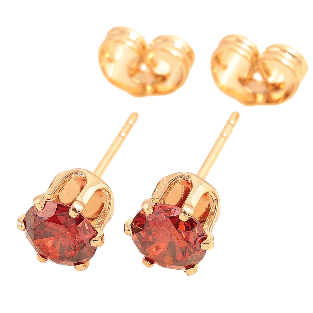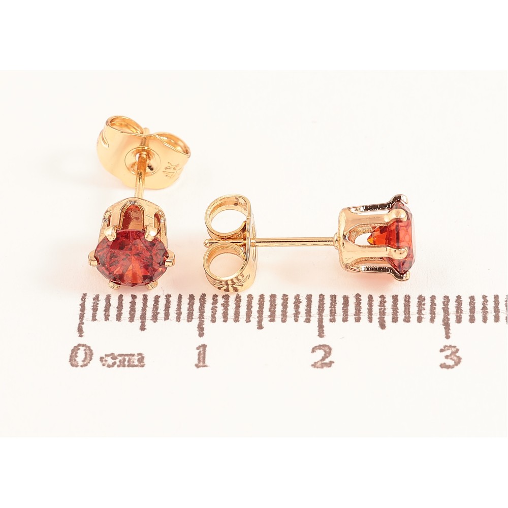 Серьги Xuping цвет Позолота 18К пусеты "Красные кристаллы в 6-ти крапановой оправе" ø 6мм