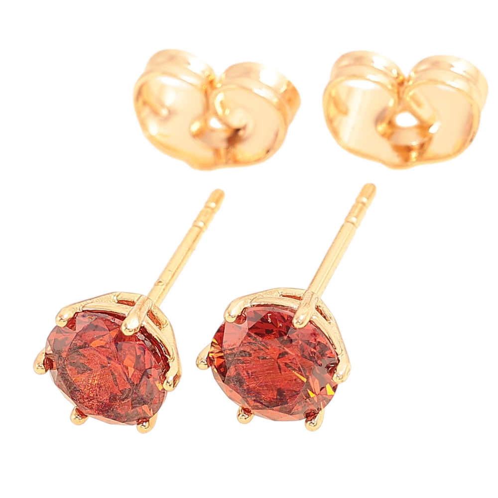 Серьги Xuping цвет Позолота 18К пусеты "Красные кристаллы в 6-ти крапановой оправе" ø 6мм