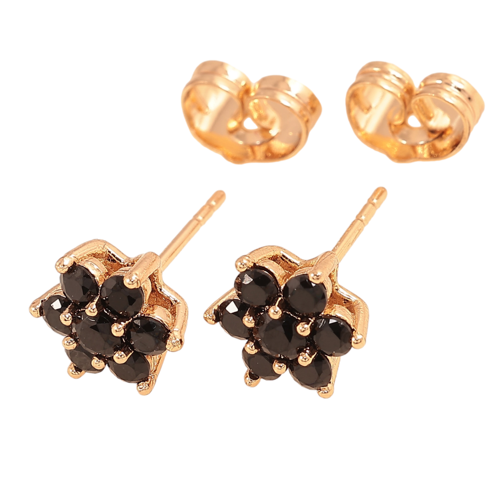 HIT Серьги Xuping цвет Позолота 18К пусеты "Черные кристальные цветочки" фото №1