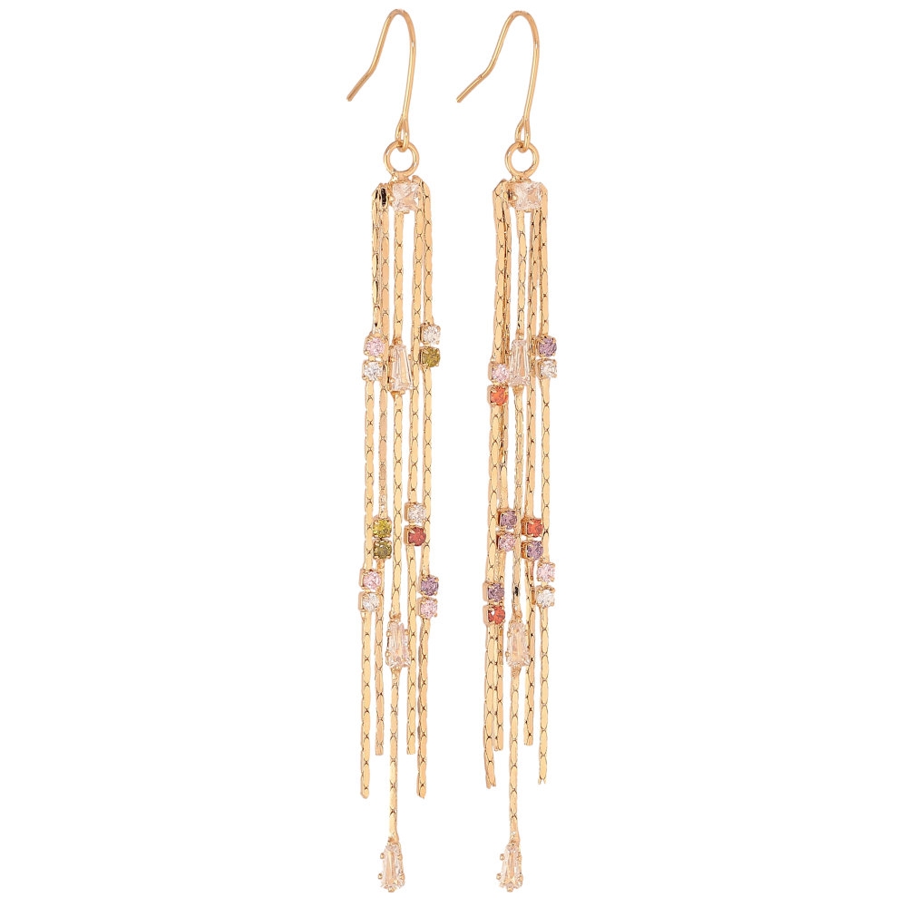 Серьги Xuping цвет позолота 18K французский замок подвески из цепочек с разноцветными кристаллами