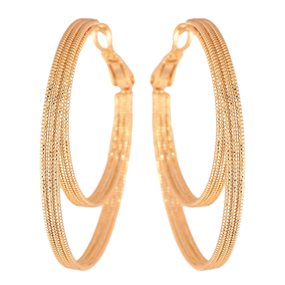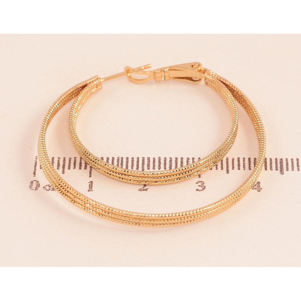 Серьги Xuping цвет Позолота 18K кольца (конго) "Двойные с узором" ø 4см