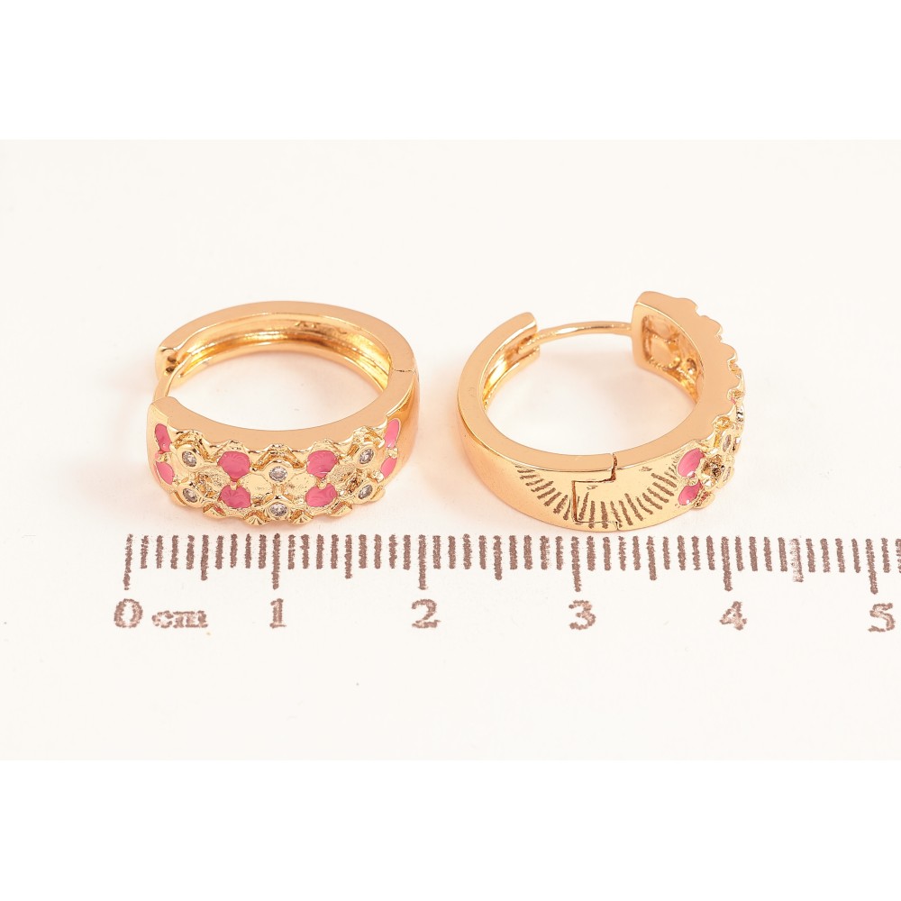 Серьги Xuping цвет Позолота 18К колечки "Узор с кристаллами и розовой эмалью"
