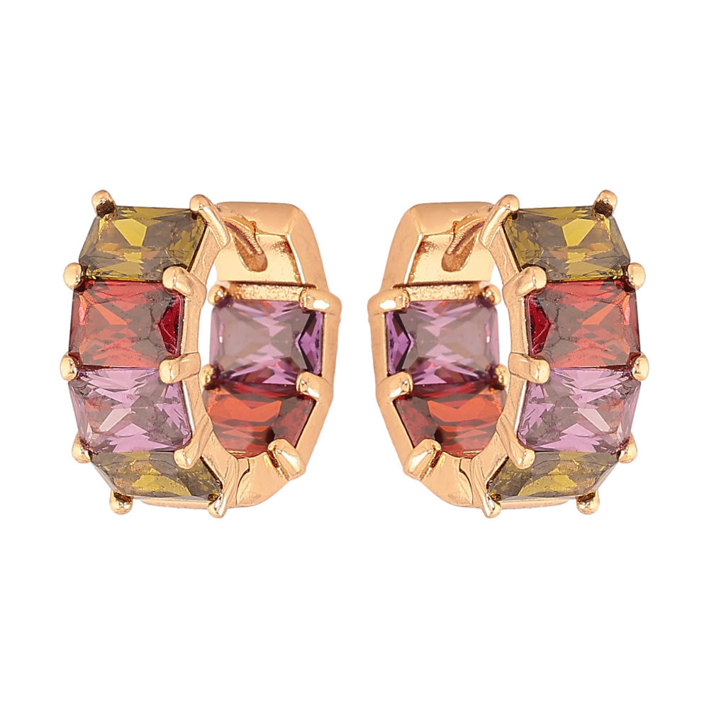 Серьги Xuping цвет Позолота 18К колечки "Дорожки разноцветных кристаллов"