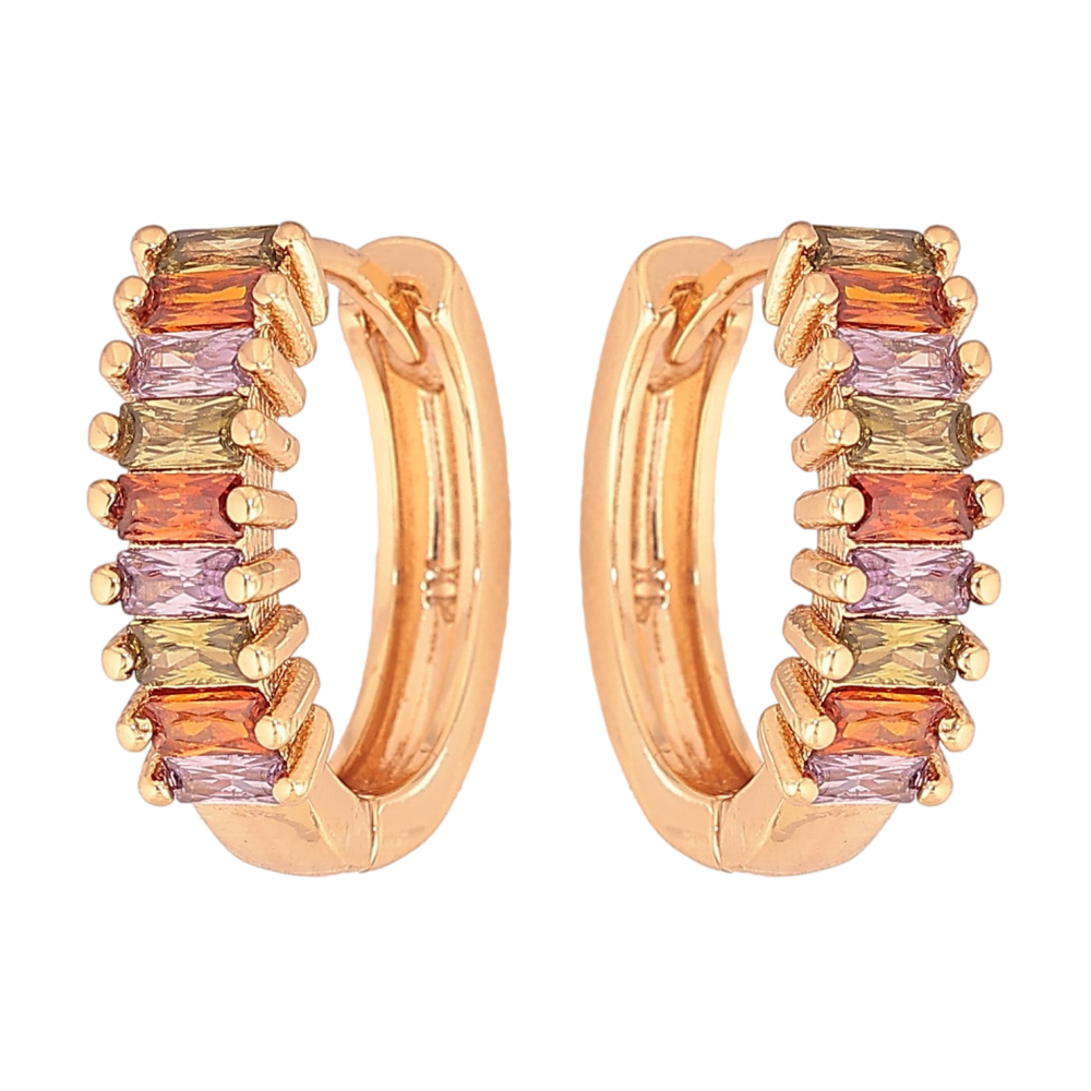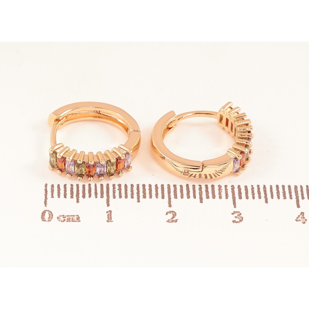 Серьги Xuping цвет Позолота 18К колечки "Дорожки разноцветных кристаллов"