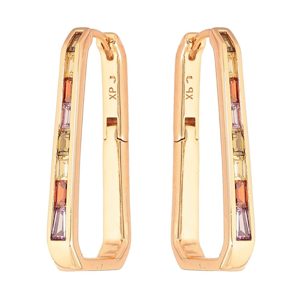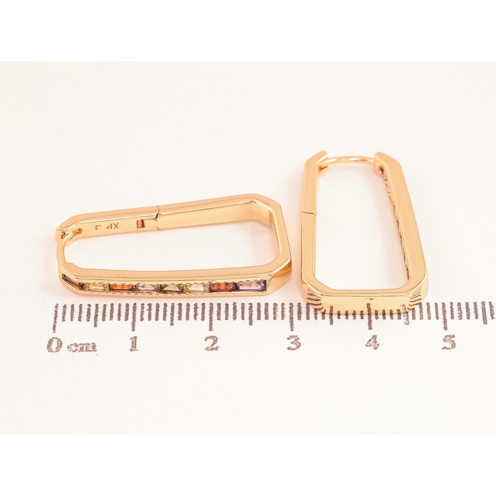 Серьги Xuping цвет Позолота 18К колечки "Дорожки разноцветных кристаллов"