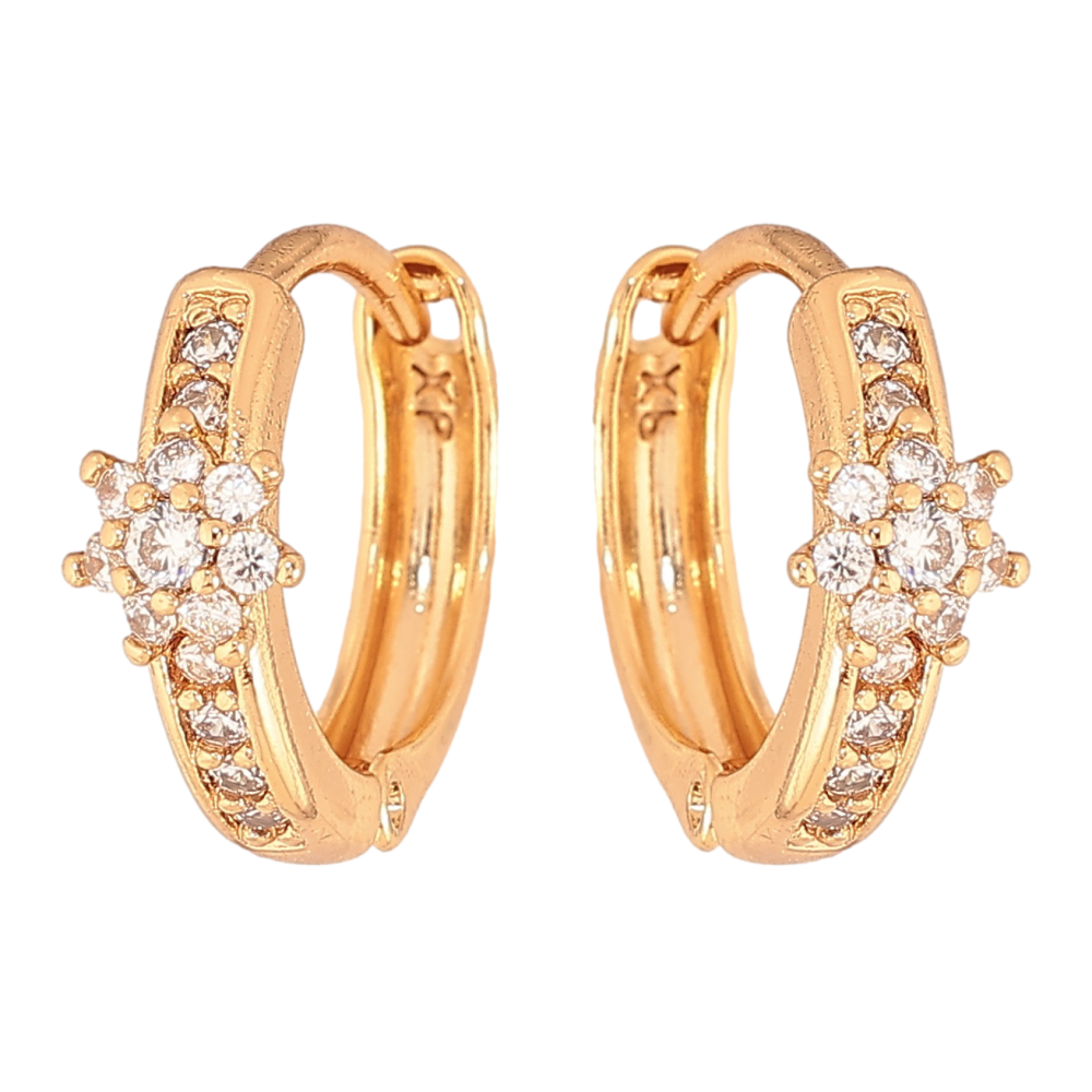 Серьги Xuping цвет Позолота 18К колечки "Кристальный цветочек" фото №1